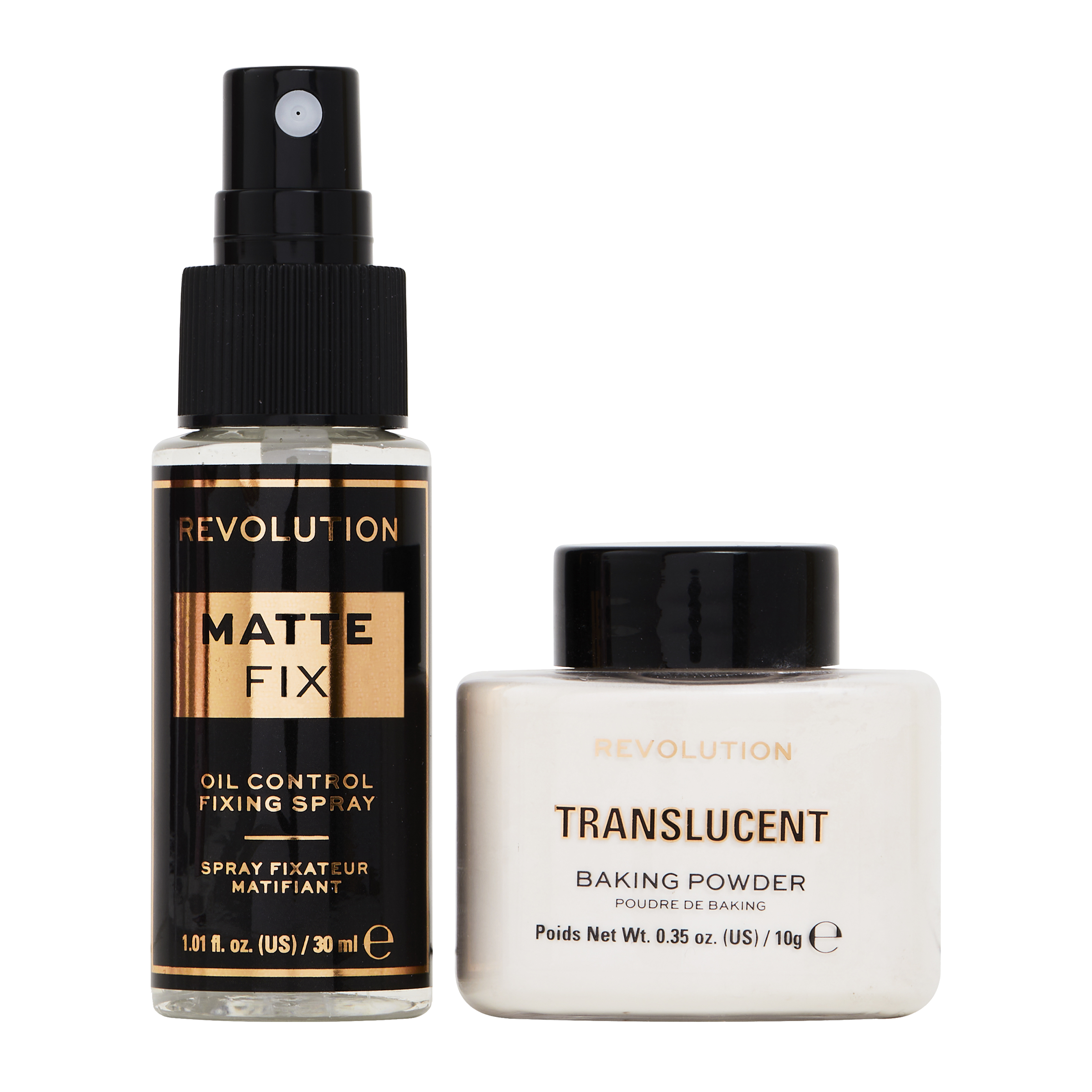 REVOLUTION MATTE FIXING SPRAY (INGREDIENTS): AQUA (WATER, EAU), GLYCERIN, 2,3-BUTANEDIOL, PVP, PROPANEDIOL, 1,2-HEXANEDIOL, PEG-40 HYDROGENATED CASTOR OIL, ALLANTOIN, CAPRYLHYDROXAMIC ACID, PARFUM (FRAGRANCE). REVOLUTION TRANSLUCENT