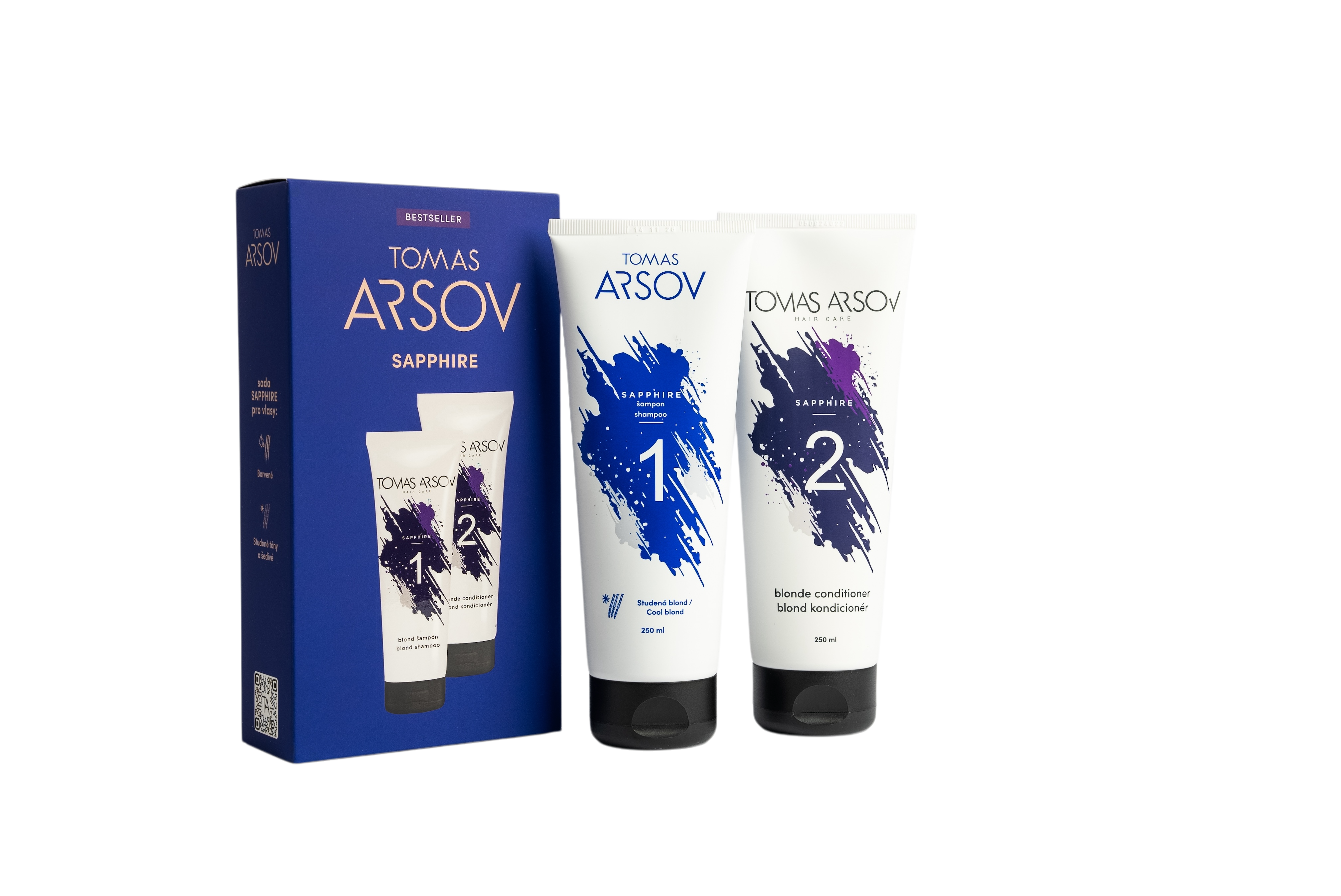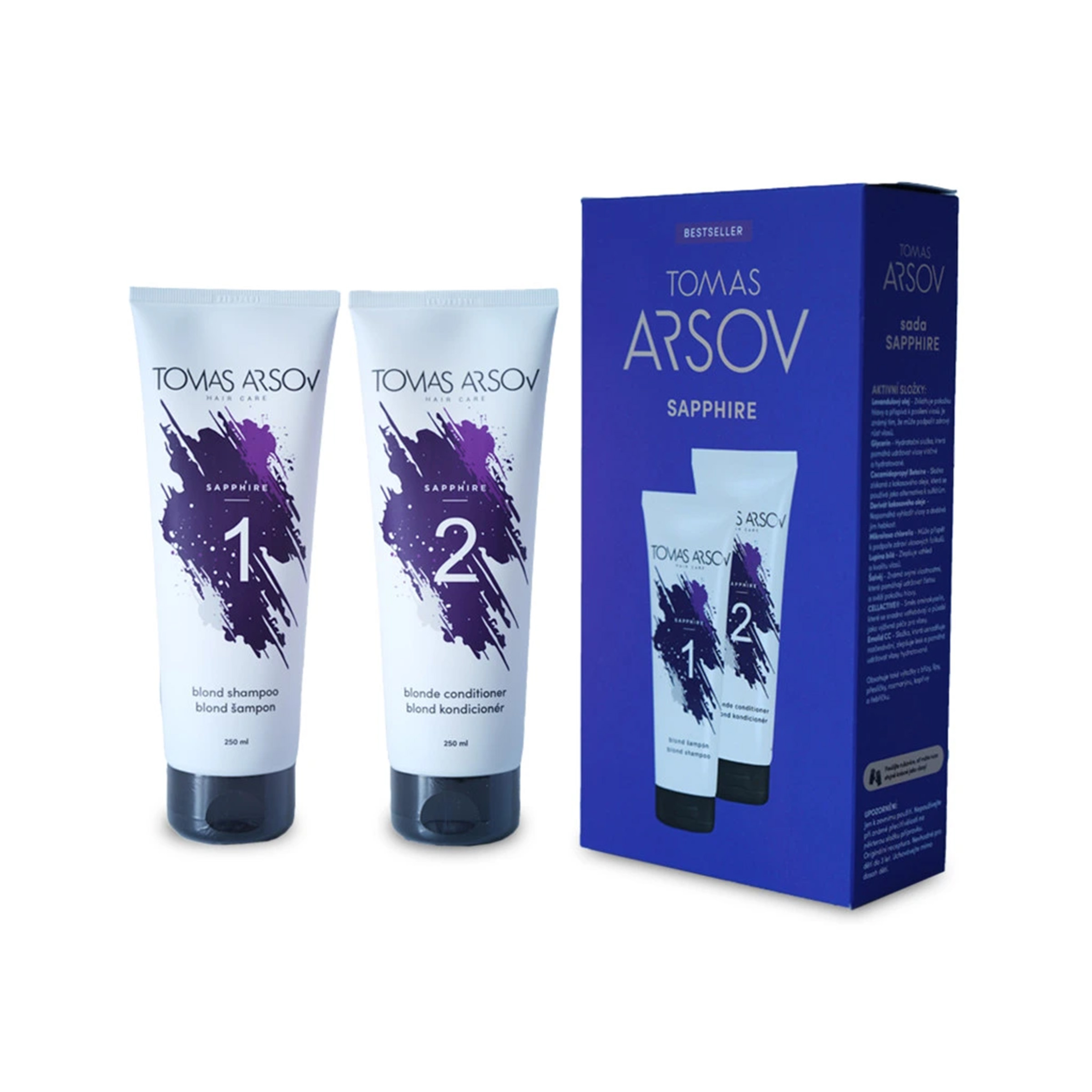 Sada obsahuje šampon a kondicionér z řady Sapphire, které pečuje o blond či zesvětlené vlasy a pomocí fialových pigmentů aktivně potlačují nežádoucí žluté a zlatavé odstíny.