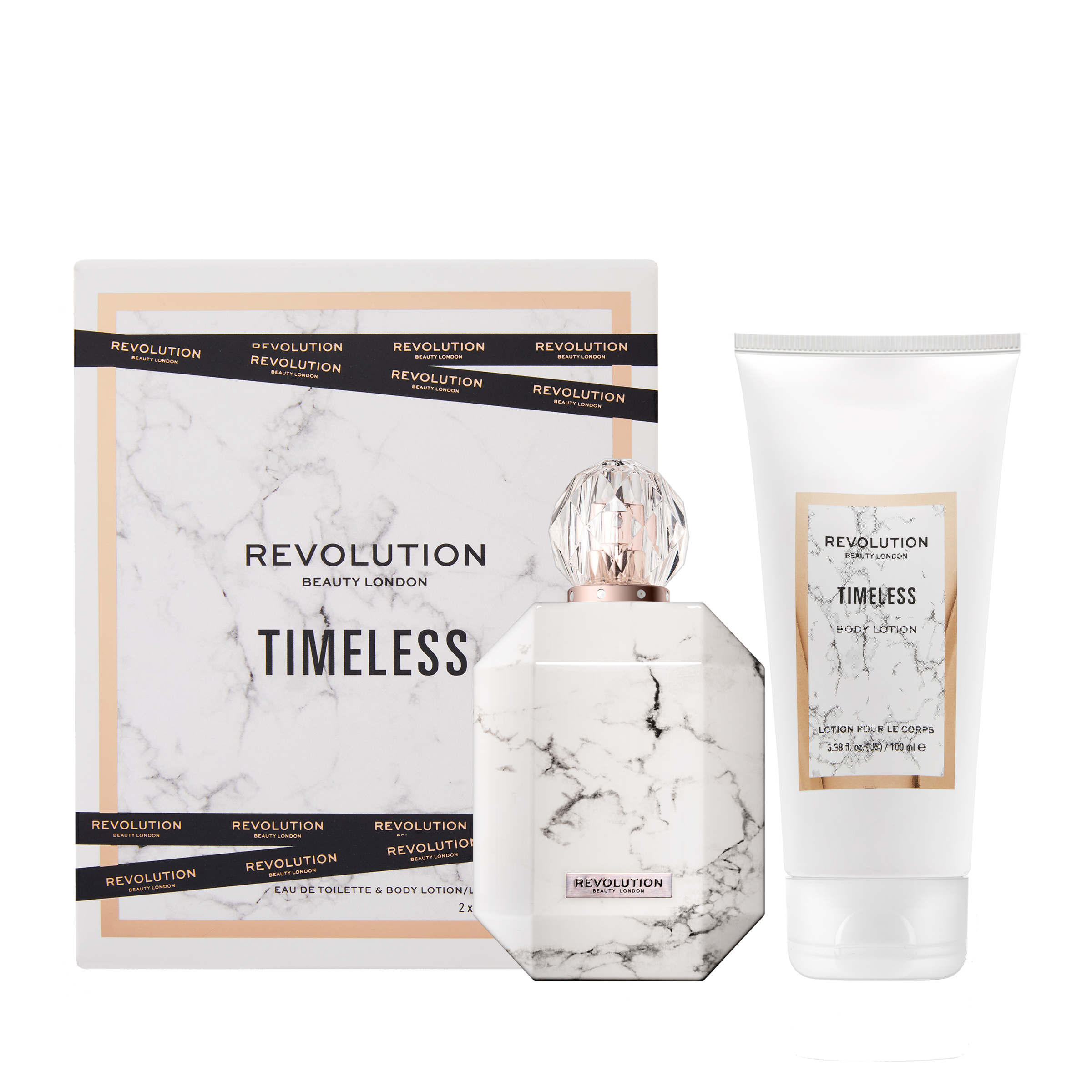 Ponoř se do luxusní vůně s osobitým kouzlem. Sada vůně a body lotionu Timeless Eau De Toilette od Revolution Beauty tě zahalí do ovocně-květinové exploze na celý den. Tato ovocná vůně má dřevité podtóny, které se prohlubují do jemných kořeněných tónů s nádechem růže.