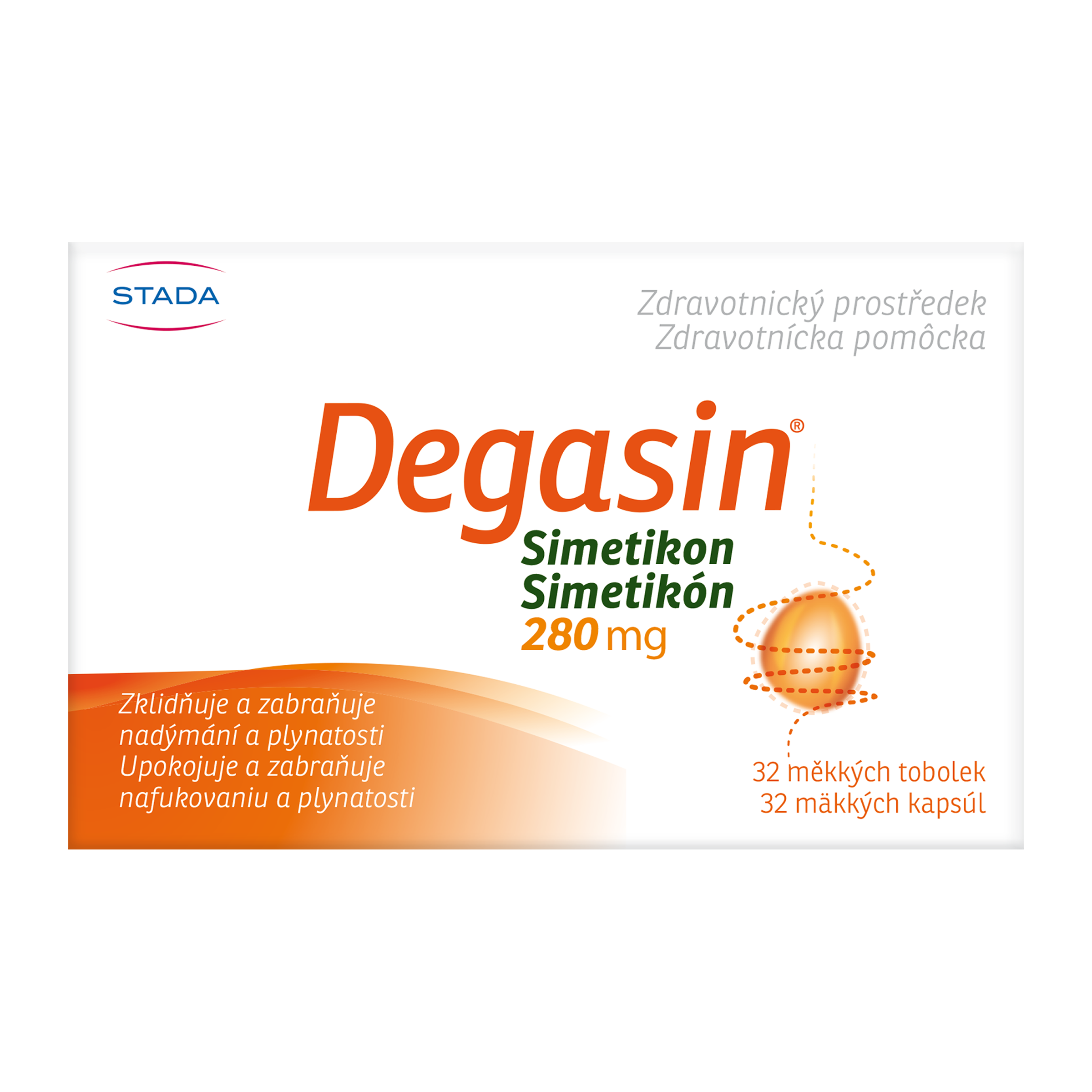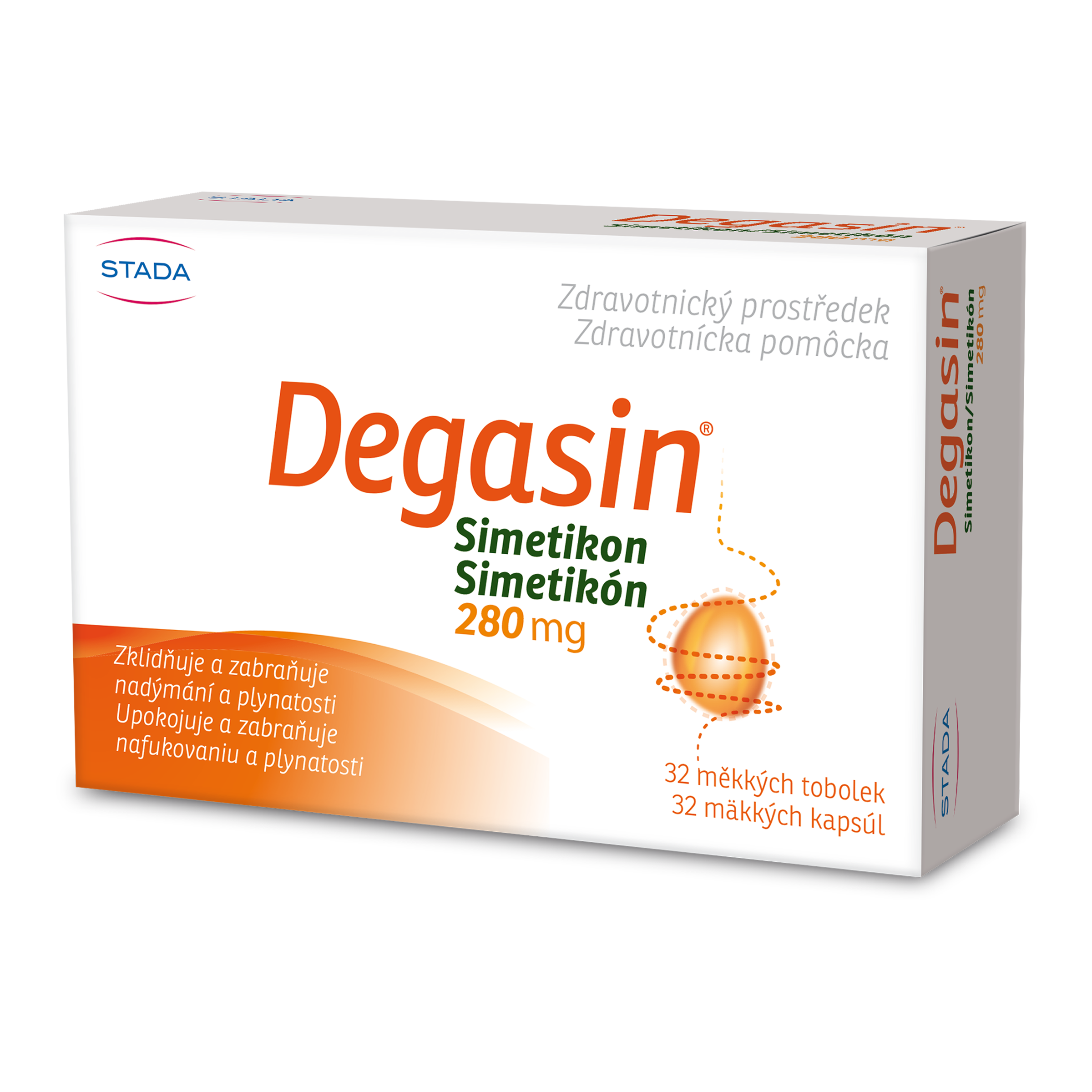 Degasin Simetikon 280 mg, doplněk stravy, 32 tobolek