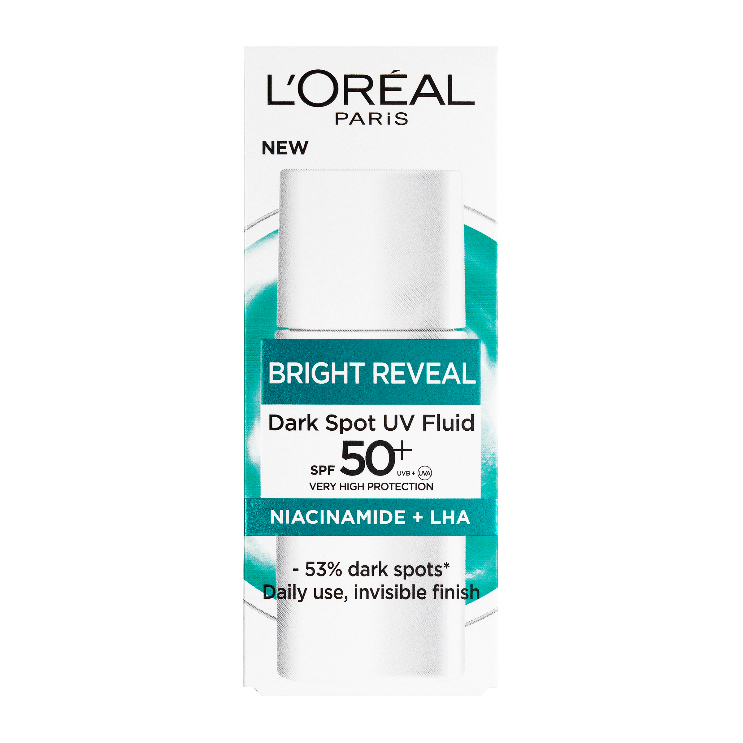 Denní Anti-UV Fluid SPF 50+ obohacený o niacinamid, LHA a vitamin E pro prevenci a korekci tmavých skvrn. Niacinamid je rozjasňující složka, která pomáhá redukovat výskyt tmavých skvrn. LHA a vitamin E, exfoliační aktivní látka v kombinaci s antioxidantem, pomáhají předcházet vzniku tmavých skvrn.