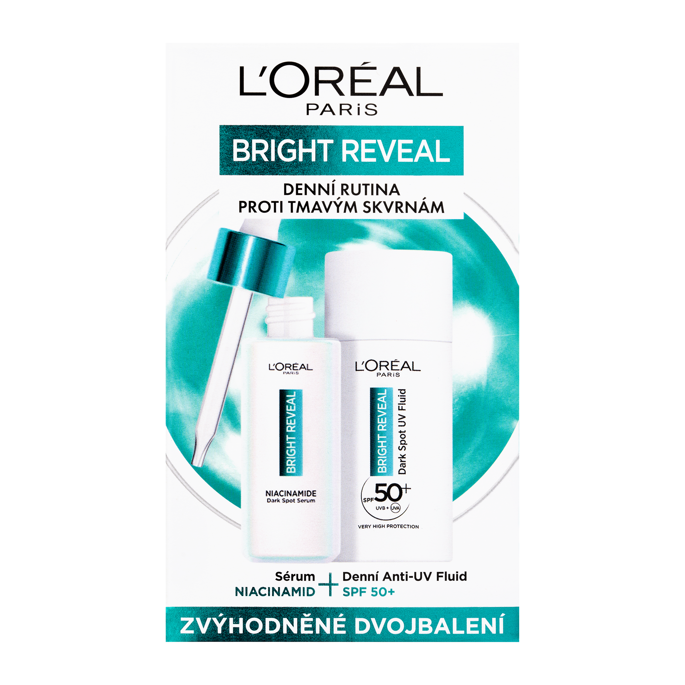 Denní fluid SPF50+ a sérum Bright Reveal Duopack