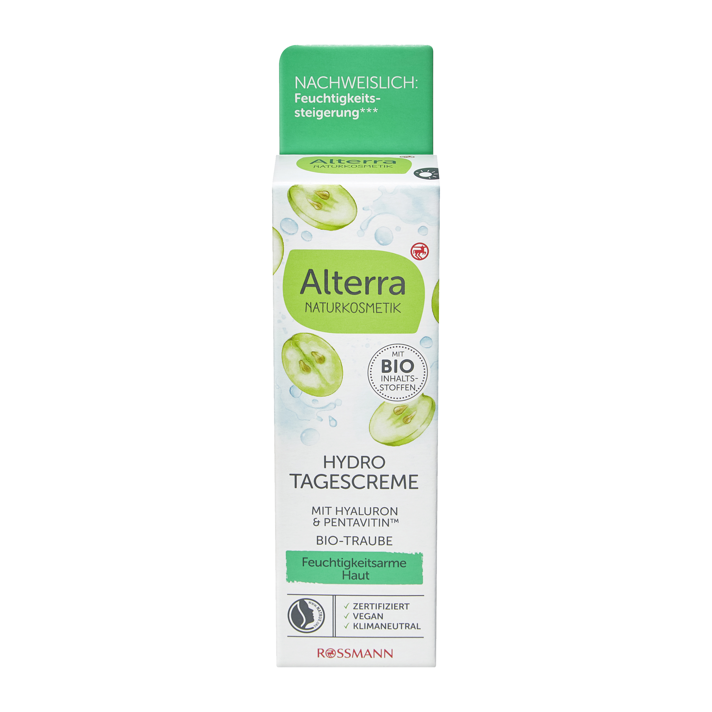 Každá pleť si zaslouží individuální péči. Hydratační komplex s kyselinou hyaluronovou a Pentavitinem® dodává přes den optimální hydrataci a v kombinaci s výtažky z bio bílého čaje působí proti prvním známkám stárnutí pleti. Bio olivový olej, bio bambucké máslo a bio výtažky z hroznového vína pečují o pleť a udržují ji krásně vláčnou.