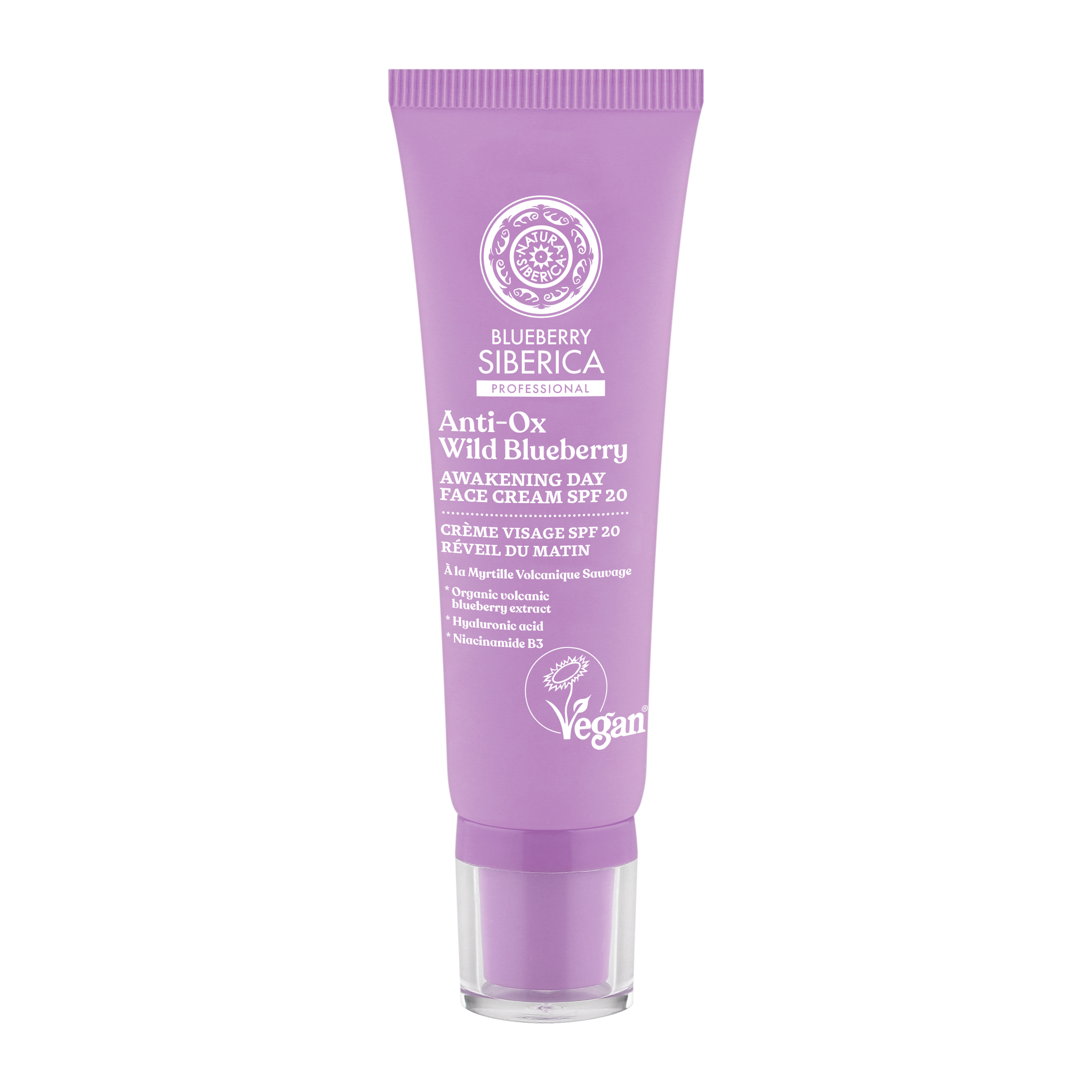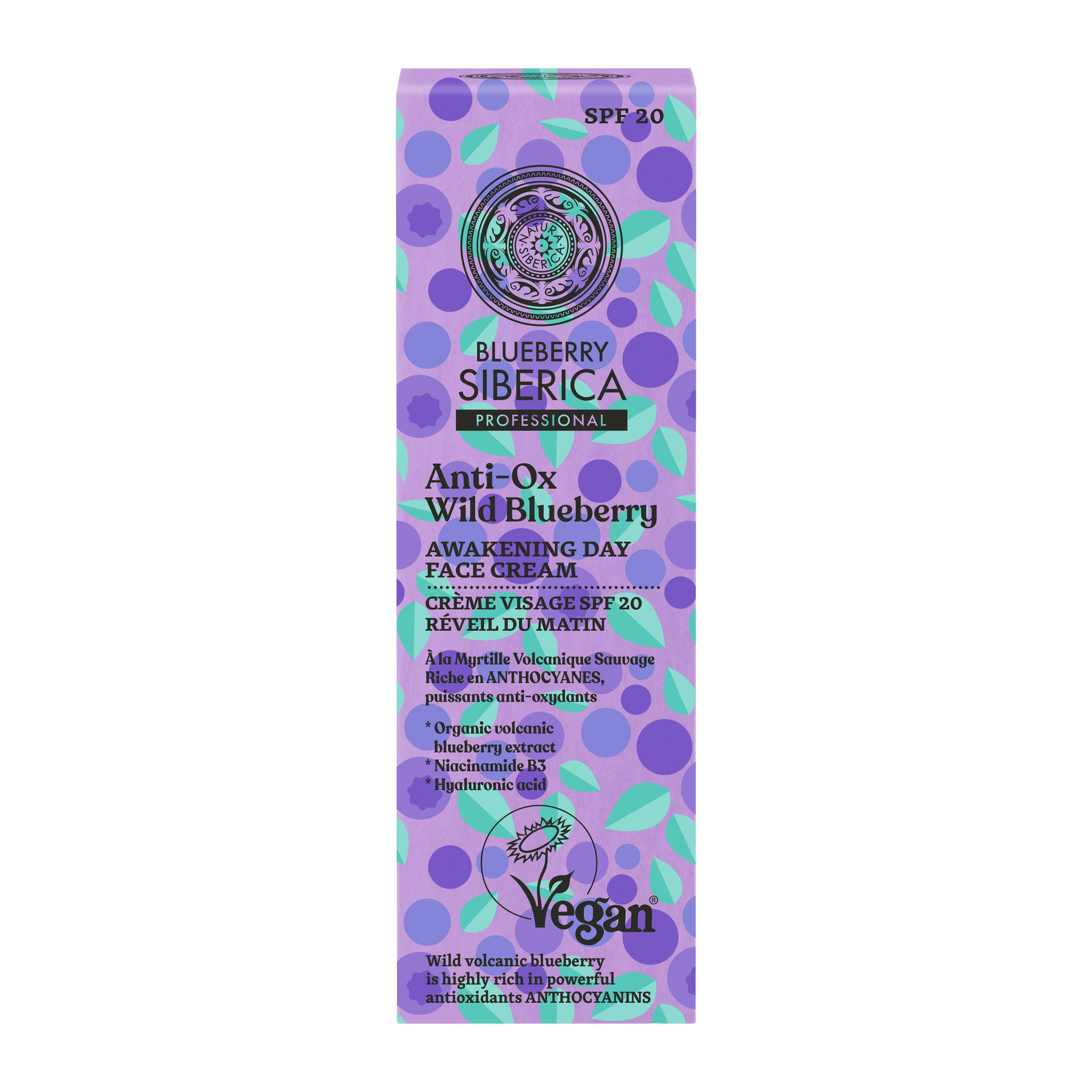 Divoké sopečné borůvky, rostoucí v drsných podmínkách tajgy, obsahují velké množství cenných antioxidantů antokyanů. Borůvky jsou také bohaté na beta karoten a vitamíny skupiny B, které dodávají jas, zanechávají pokožku hydratovanou a hebkou. Kyselina hyaluronová – účinně hydratuje pokožku, zabraňuje vzniku jemných vrásek. Niacinamid B3 vyrovnává tón pleti a zanechává ji přirozeně zářivou každý den.