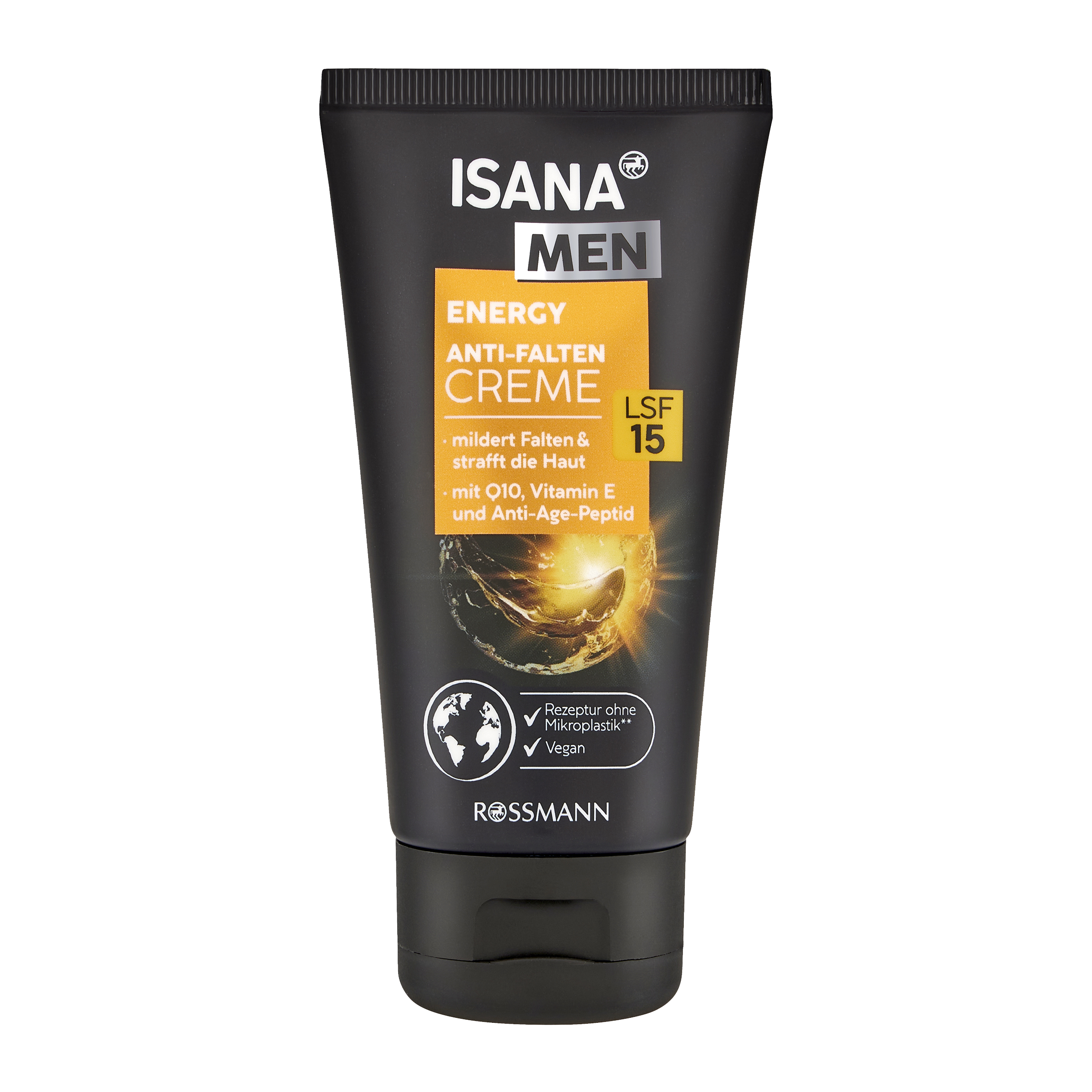 Denní pleťový krém pro muže ISANA Men redukuje hloubku vrásek a zpevňuje pleť, s koenzymem Q10 a vitamínem E, které podporují přirozenou obranyschopnost pleti proti vlivům prostředí vyvolaným UV zářením.