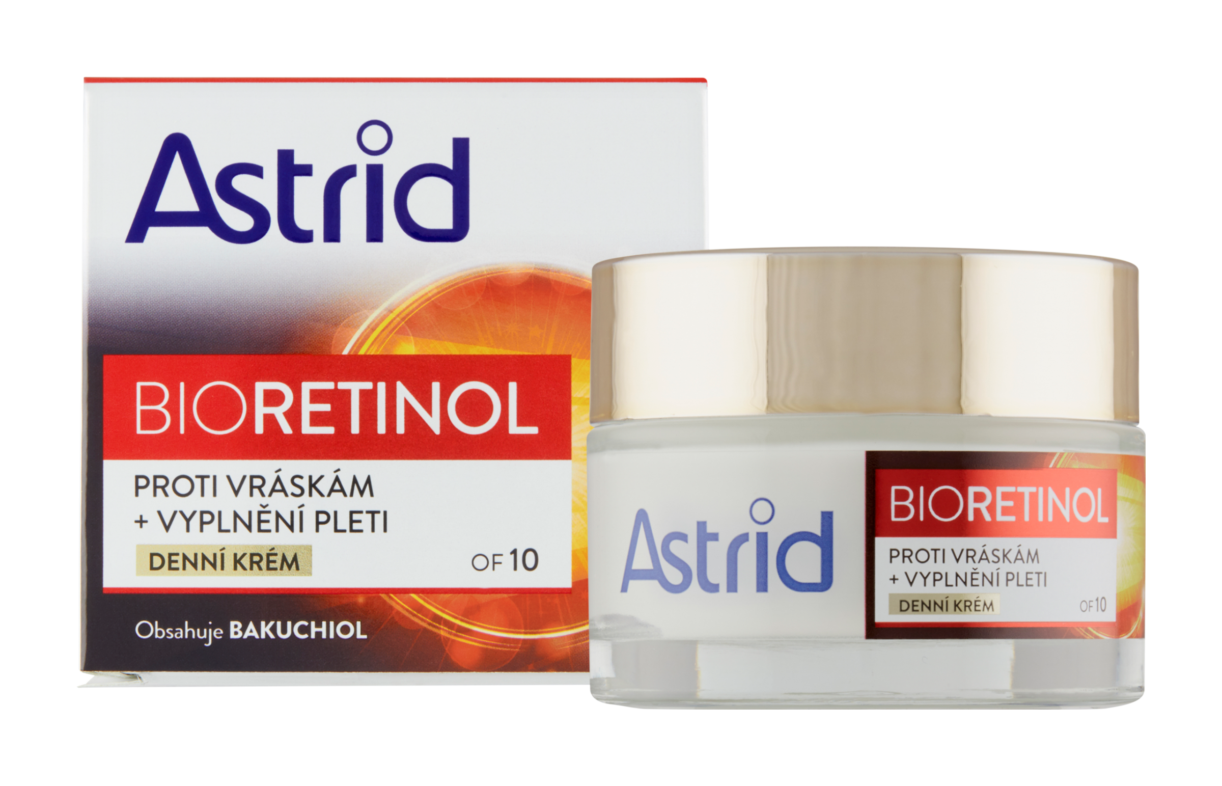 Získejte všechny benefity retinolu proti stárnutí bez jeho vedlejších účinků! Astrid Bioretinol pokročilá péče proti vráskám založená na inovativní, nejmodernější účinné látce Bakuchiol, přírodní alternativě k retinolu, která nabízí silný účinek proti stárnutí a pro revitalizaci pleti, aniž by hrozilo její podráždění. Astrid Bioretinol denní krém proti vráskám účinně hydratuje, příjemně vypíná a zpevňuje zralou pleť. Krém zlepšuje elasticitu pleti a viditelně redukuje počet a velikost vrásek. Složení obohacené o vitamíny B5, B3, C a E, pomáhá zesílit pleť, zpomaluje barevné změny a zmírňuje další nedokonalosti pro podporu jejího přirozeného jasu. Obohacený o OF 10 pro ochranu pleti před UV zářením a předčasným stárnutím. Pro hladší, jemnější a omlazenou pleť.