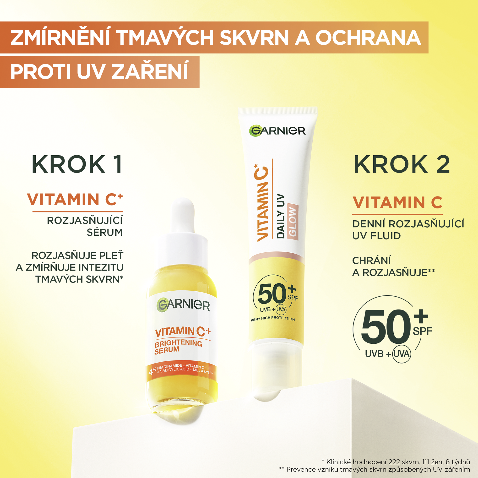 SPF ochrana je v dnešní době nutností pro zachování zdravého vzhledu pleti. Garnier nabízí každodenní řešení v podobě denního rozjasňujícího fluidu ve dvou variantách - buď jako neviditelný lehký fluid, nebo ve verzi glow s univerzální pigmentací pro jemné krytí při zachování maximální ochrany před sluncem.