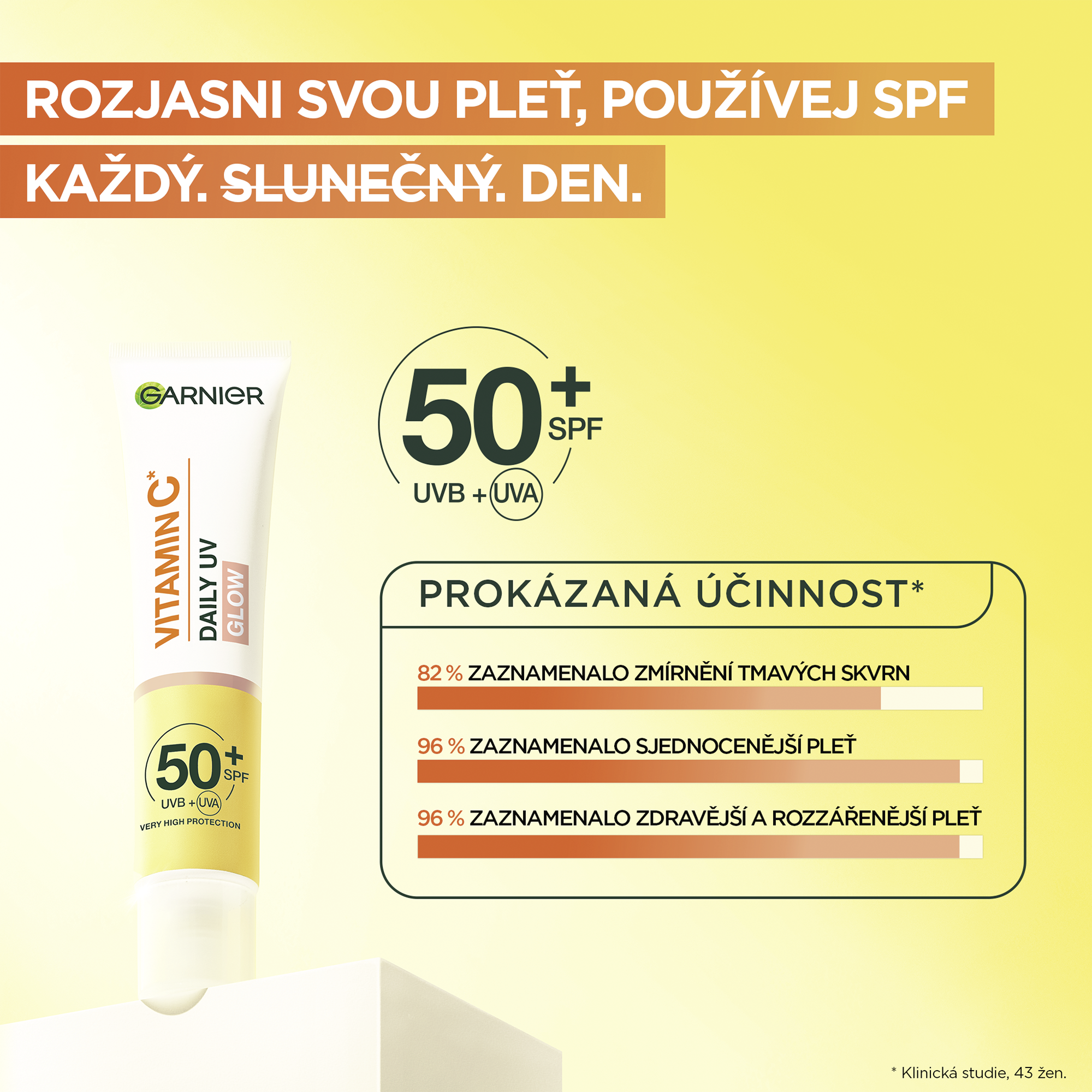 SPF? Každý den s denním rozjasňujícím fluidem s vitaminem C a SPF50+ od Garnier