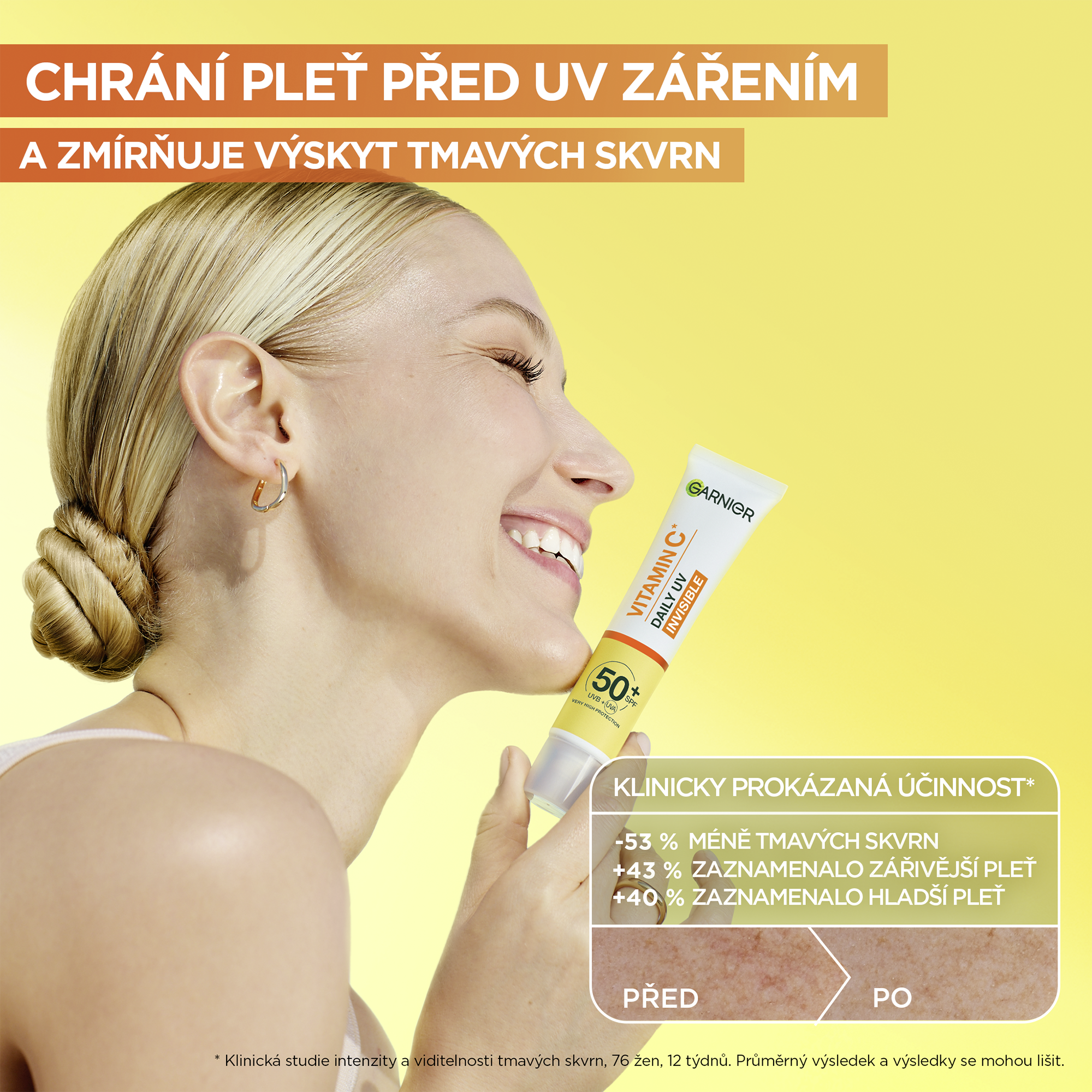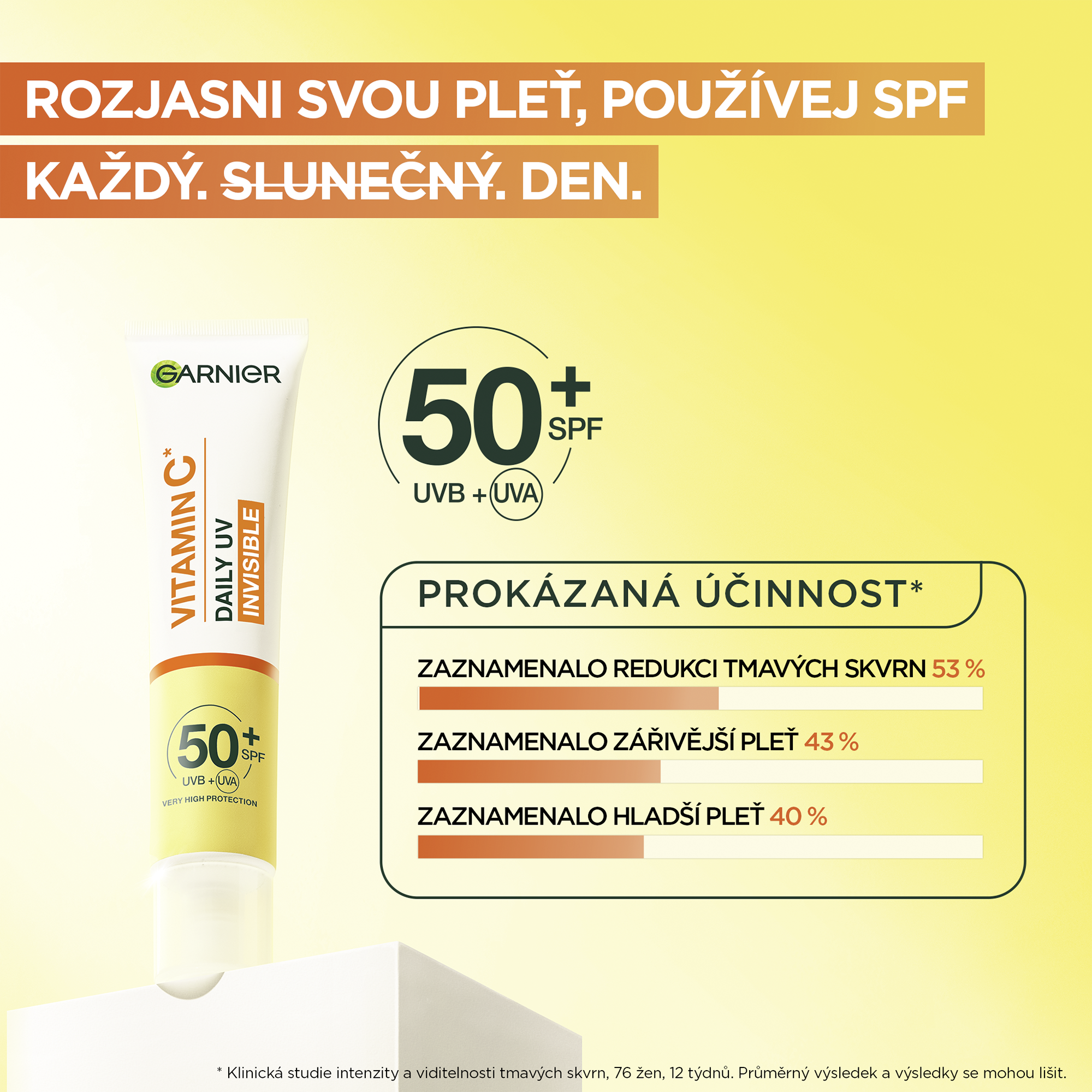 SPF? Každý den s denním rozjasňujícím fluidem s vitaminem C a SPF50+ od Garnier