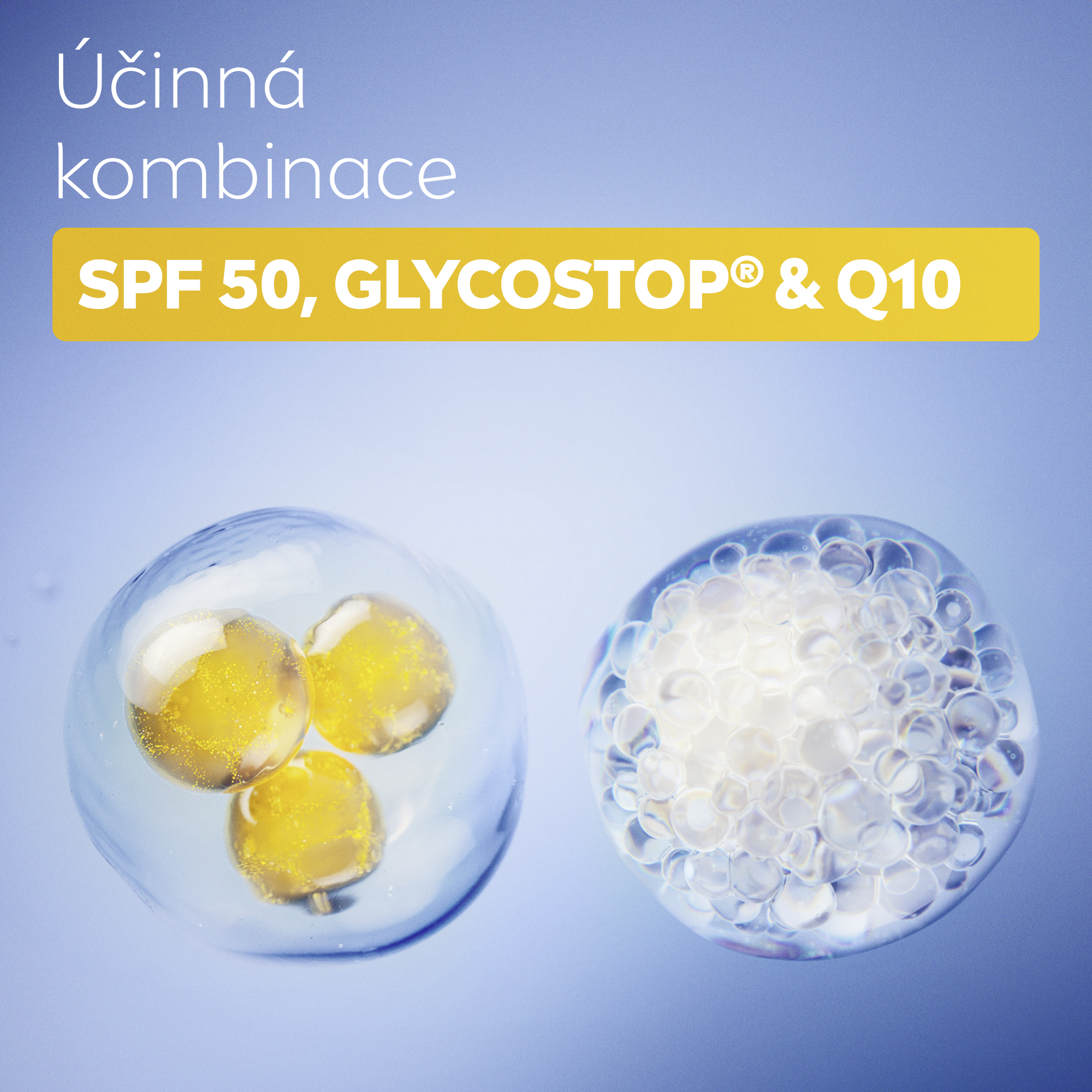 Klinicky prokázáno, potvrzeno spotřebiteli: Po 1. použití: Hydratovaná, hebká, jemná a chráněná pleť. Po 2 týdnech: Méně linek a jemných vrásek.** Po 4 týdnech: Posiluje pleti vlastní obranný systém. Trojí ochrana proti vráskám Ochrana, prevence a redukce vrásek. Glykace je proces, kdy cukr může poškodit kolagen a elastin, což může vést k tvorbě vrásek a ztrátě pevnosti pleti. Glycostop® pomáhá tento proces blokovat.*