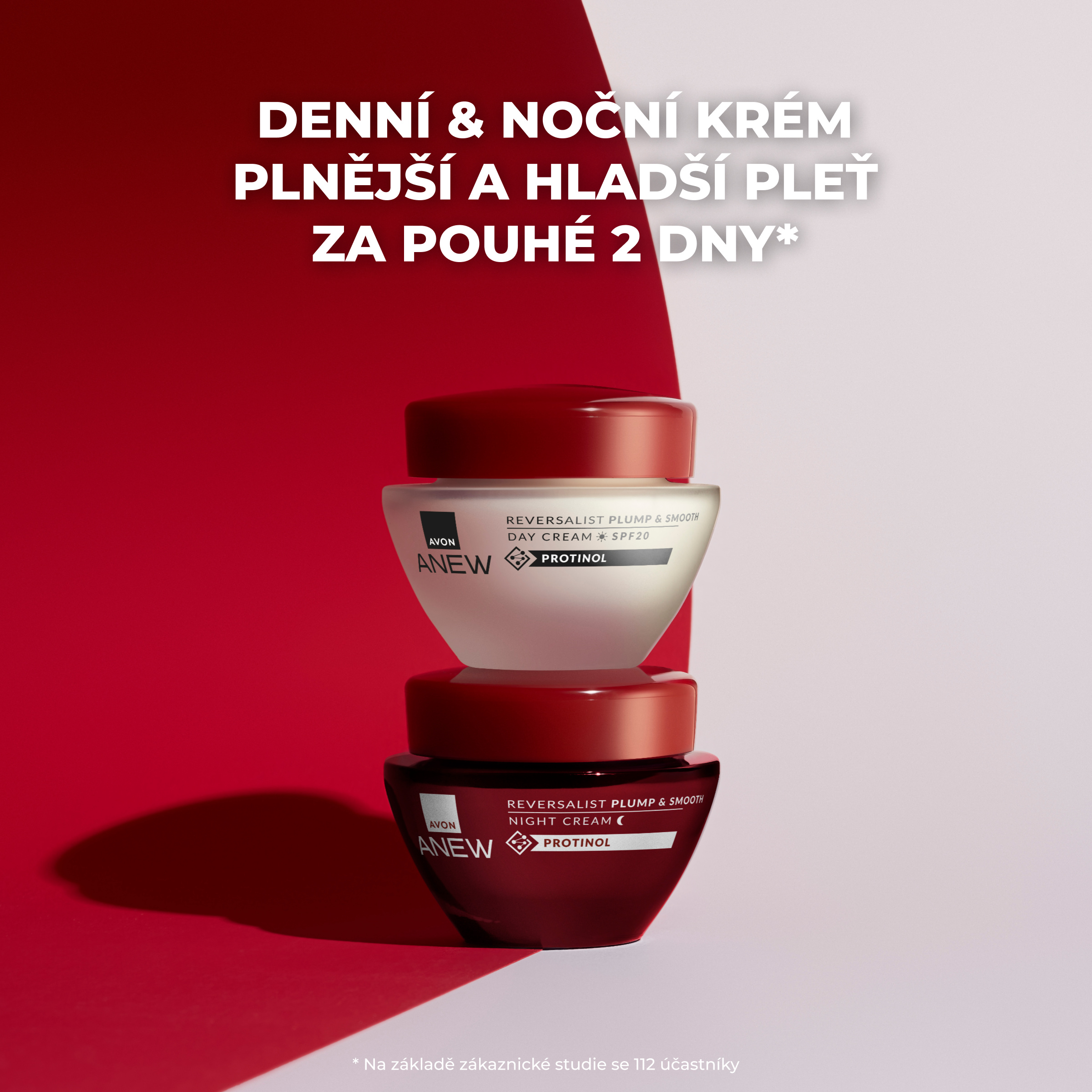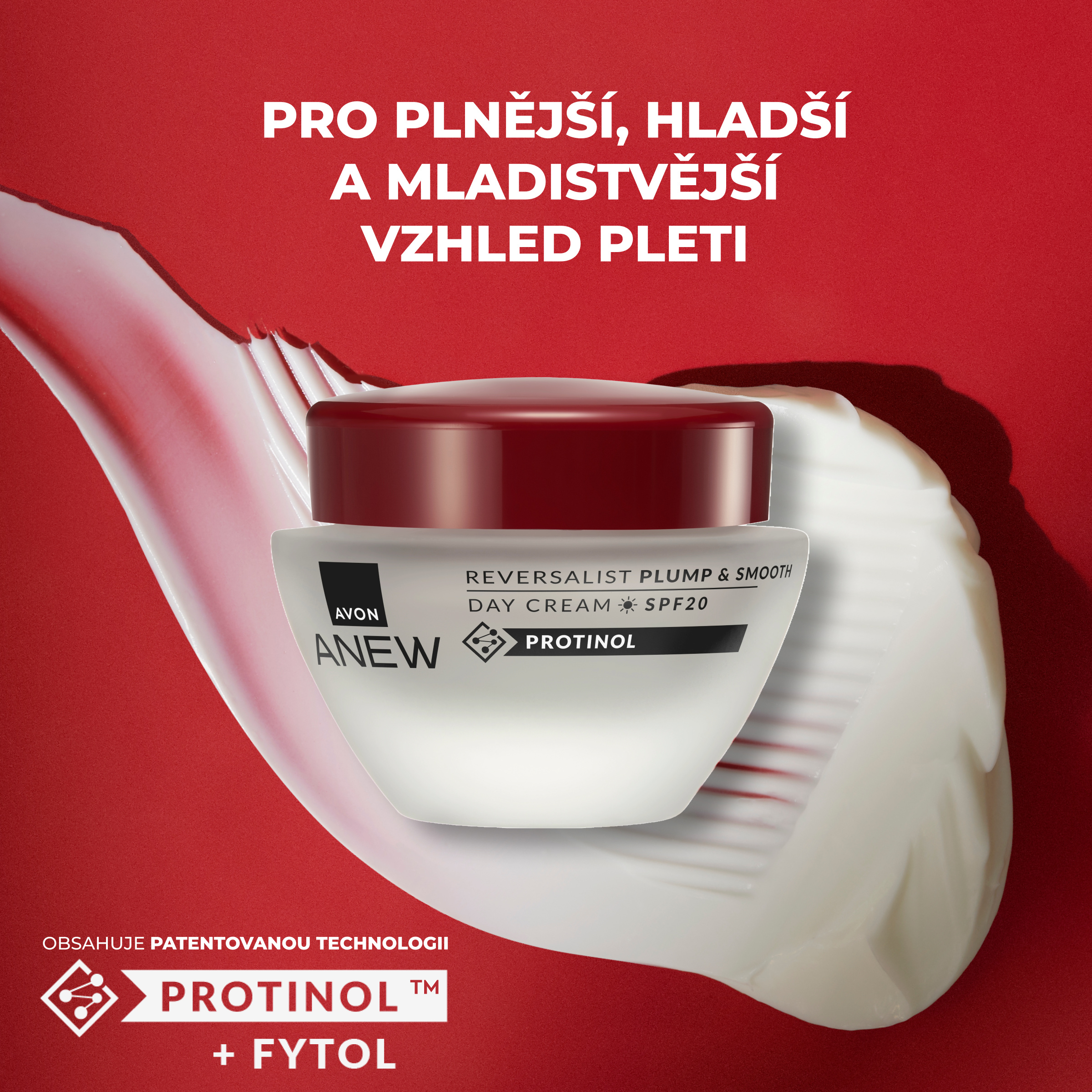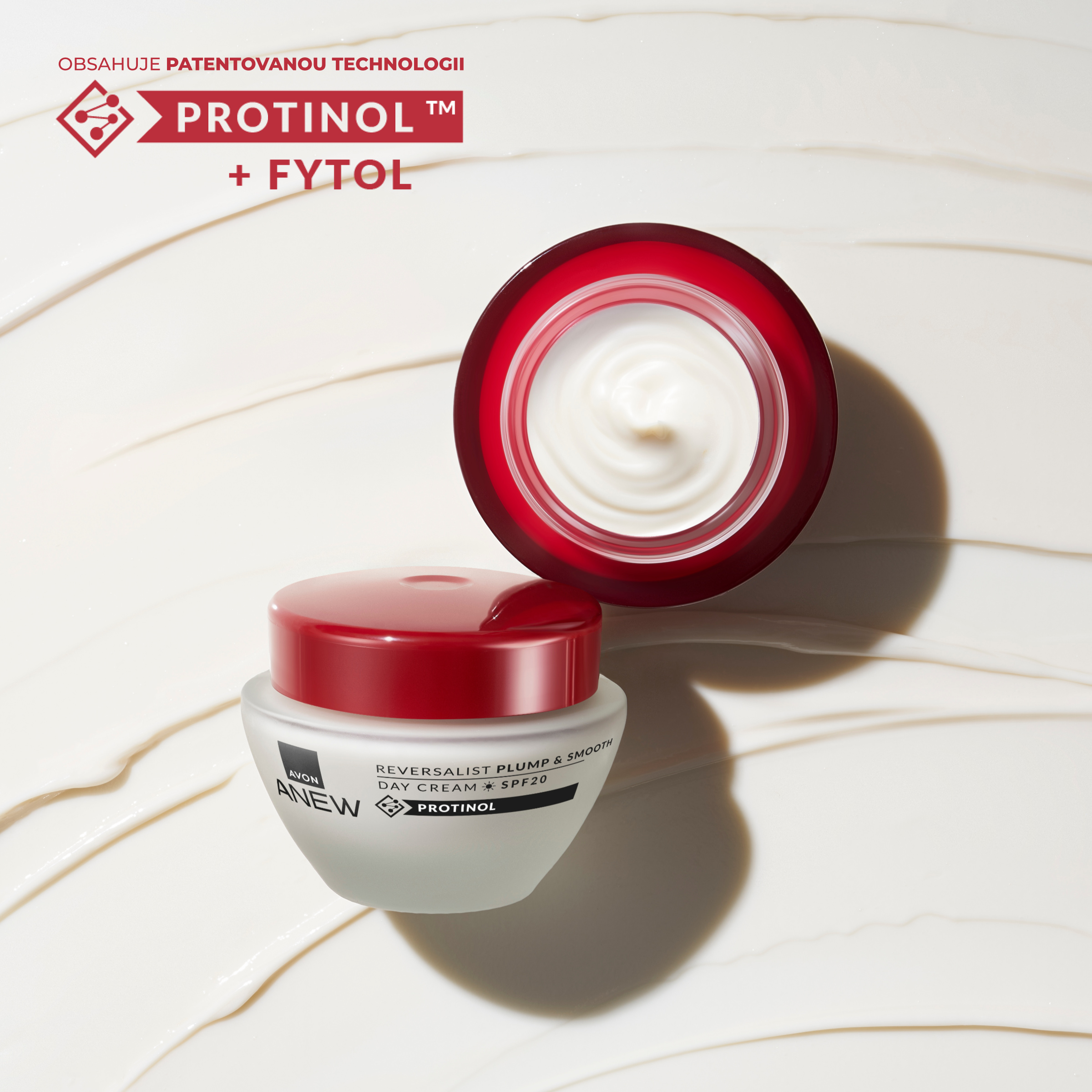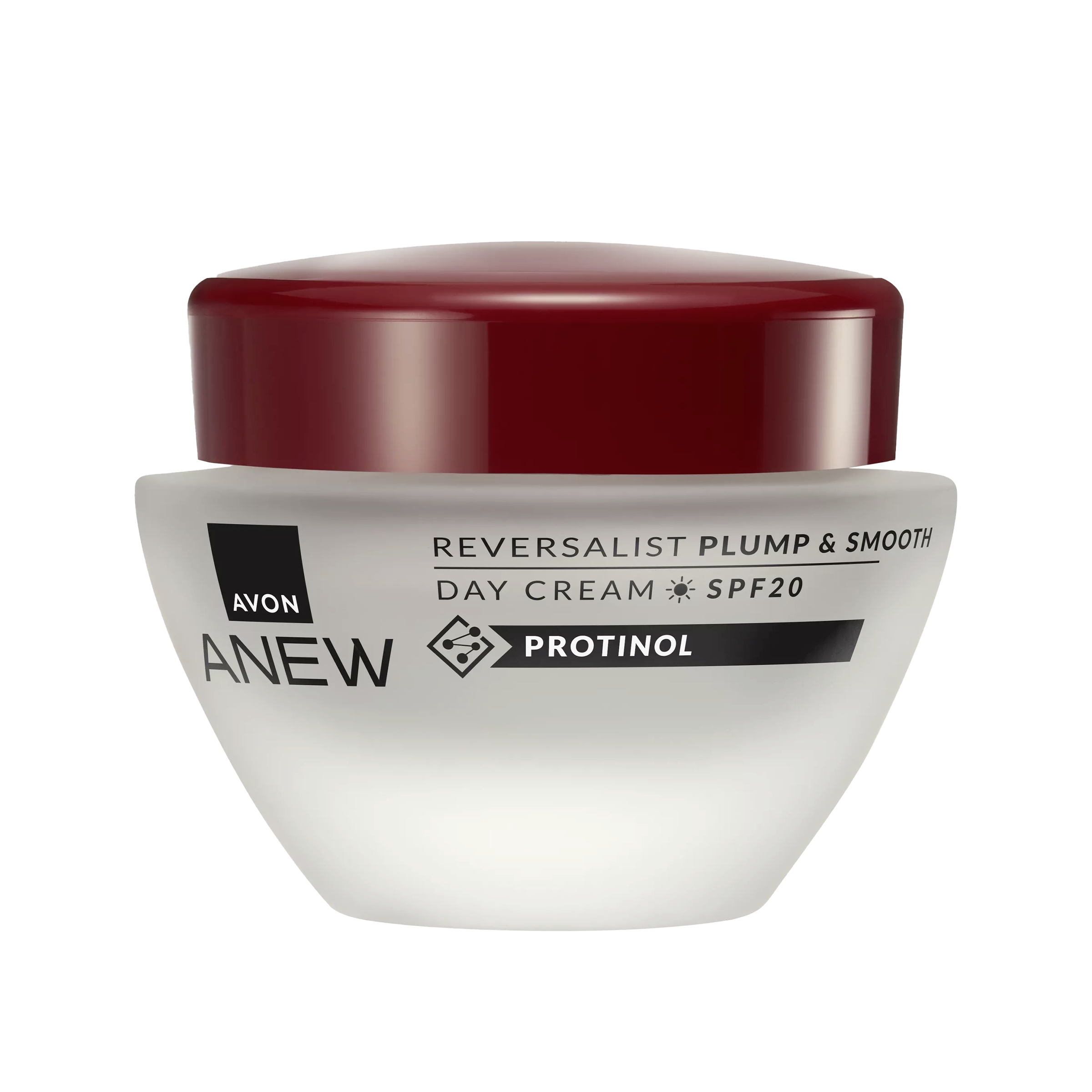Denní vyplňující krém Anew Reversalist s SPF 20 navyšuje hladinu kolagenu a kyseliny hyaluronové pro efekt vyhlazení vrásek, obnovu pružnosti a mladistvý zářivý vzhled pleti. Obohaceno o oceněnou technologii PROTINOL™ + FYTOL pro podporu tvorby dvou typů kolagenu a pro plnější a hladší pleť.