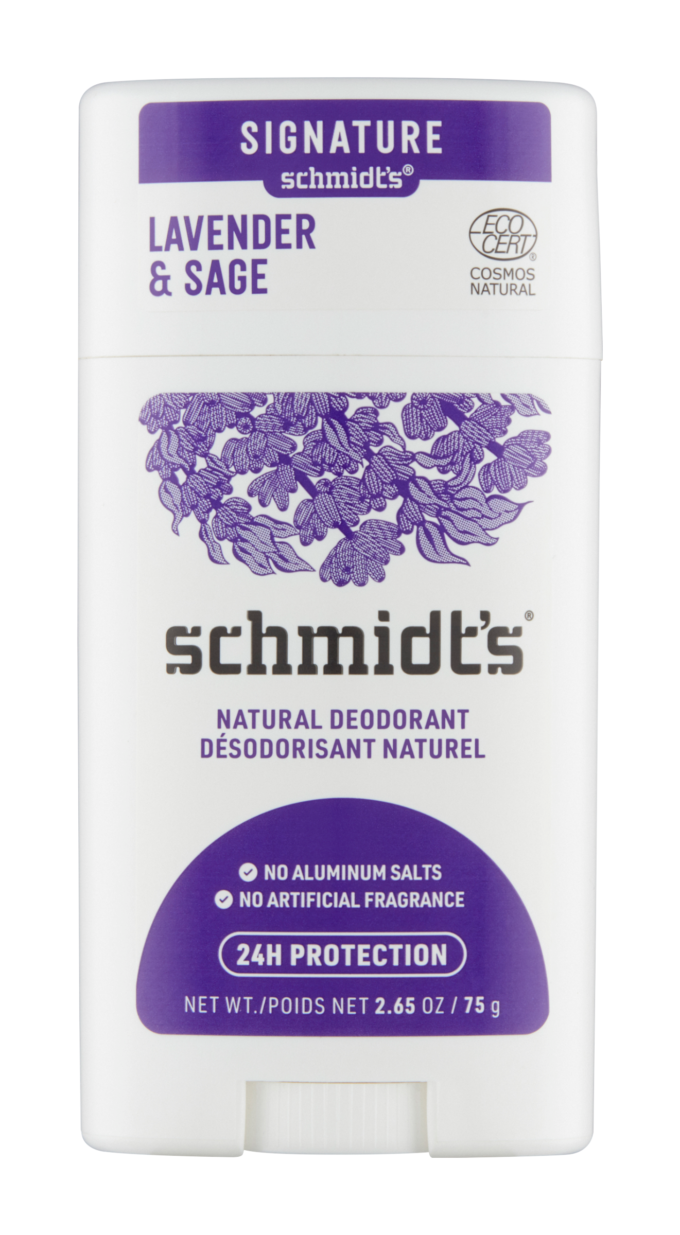 Objevte jemnou bylinnou uklidňující vůni nového 100% přírodního deodorantu s vůní levandule a šalvěje. Často slýcháme, že přírodní deodoranty nefungují, tak jsme vytvořili takový, který funguje. Neobsahuje hliník, umělé aroma, zato vám však jeho cenami ověnčené složení s certifikací vegan a cruelty-free pomůže neutralizovat zápach a udrží vás svěží, samozřejmě díky rostlinným a minerálním složkám. Nemastné složení, nezanechává stopy a umožňuje snadné vstřebání deodorantu - stačí aplikovat pouze malé množství. Při použití přiložte produkt krátce k pokožce, aby došlo ke změkčení tělesným teplem. Šetrně naneste malé množství do podpaží. Naše klasické složení využívá jedlé sody k neutralizaci zápachu a je trochu tužší než u běžných deodorantů - zhuštěné složení poskytuje extra ochranu proti zápachu a pro nejlepší výsledky jej stačí nanést pouze v malém množství. Funguje neuvěřitelně dobře! Oceňovaná složení produktů Schmidt's Naturals využívají inovativních ingrediencí z rostlin a minerálů. Věříme, že drobnými, ale efektivními změnami životního stylu můžete prospět sobě i svému okolí. V prostředí odvětví, které nás nutí chtít neustále více, usilujeme o neustálé zvyšování laťky a nastavování nových standardů pro přírodní produkty. Pro nás tkví budoucnost přírodních produktů v kvalitě a průlomových složeních rostlinného původu, avšak vždy při zachování kvality ingrediencí či dojmu spotřebitele. Naším posláním je vyrábět produkty, které jsou zábavné, dostupné a prospěšné pro všechny. Naší misí je změnit váš pohled na to, co je přírodní.