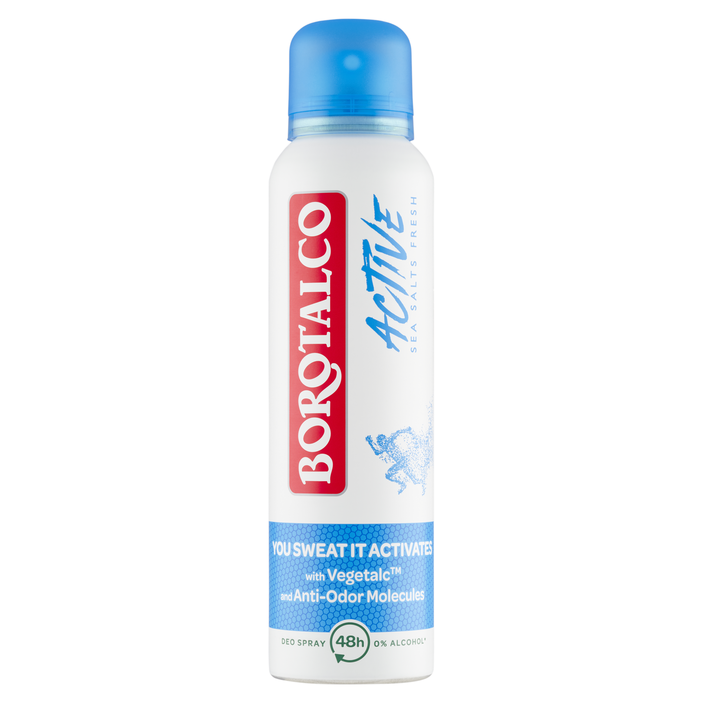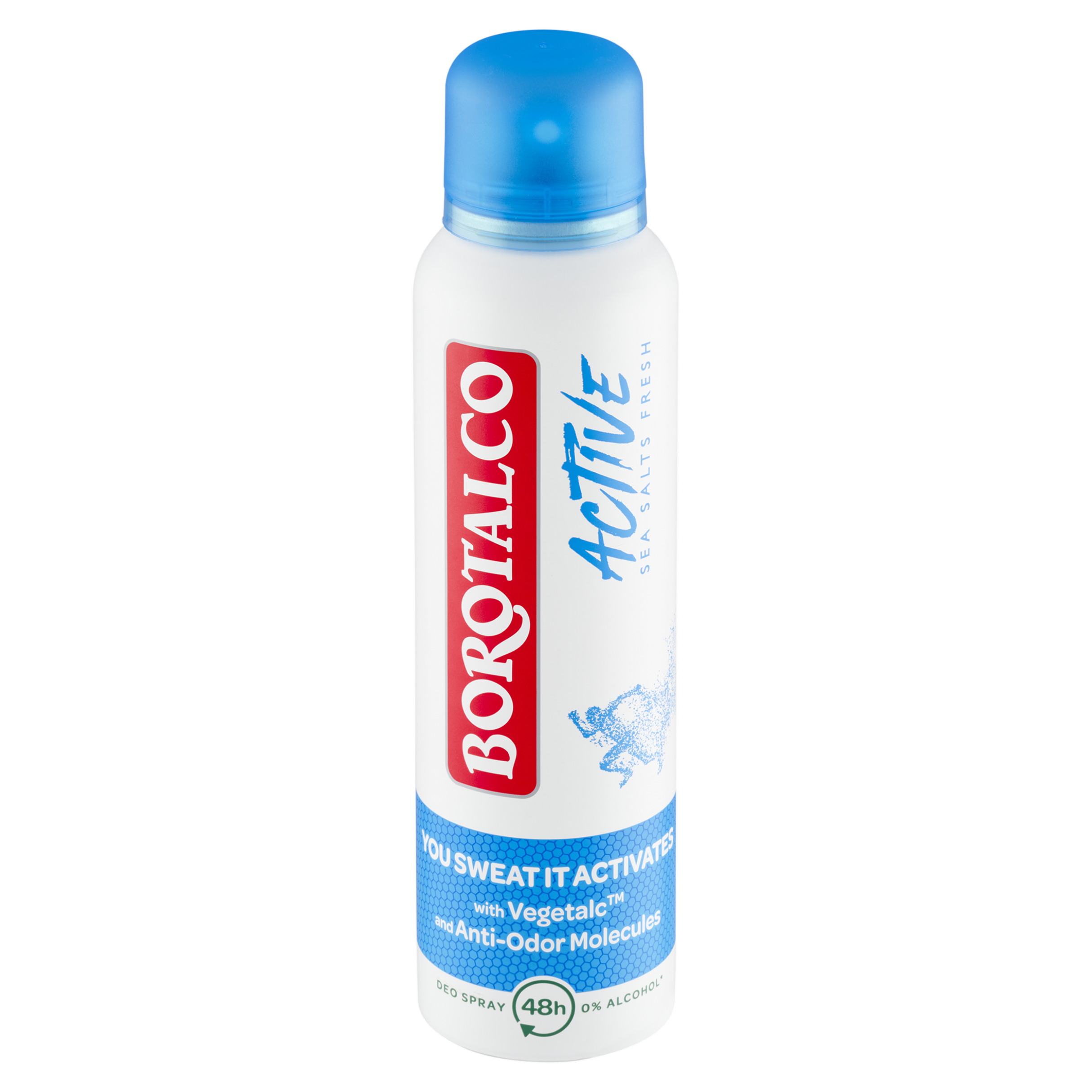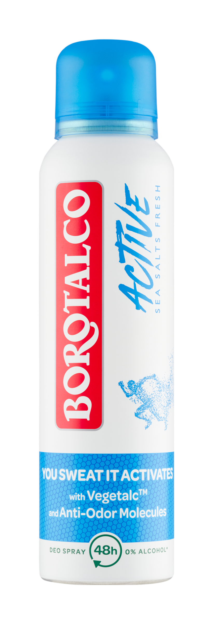 Borotalco Active je exkluzivní řada deodorantů, která obsahuje inovativní Odor-Converter™, mikrokapsle, které se aktivují potem a pohybem a uvolňují extra vůni ve chvílích, kdy je to nejvíce potřeba, pro svěžest na cestách, takže čím více se potíte, tím více funguje.