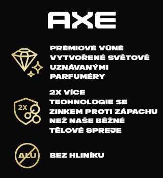 - Prémiový deodorant AXE je obohacen o éterické oleje a obsahuje dvojnásobné množství patentované zinkové formule oproti standardním AXE deodorantům