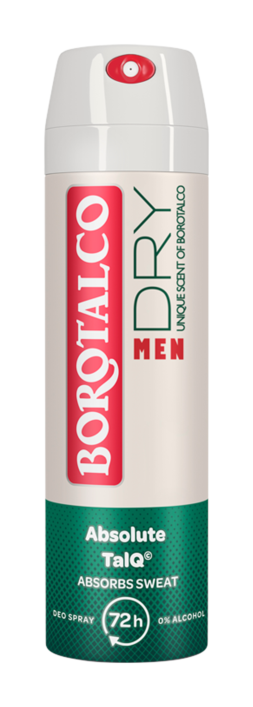Pro muže, kteří hledají absolutní ochranu proti pocení, se zrodil nový zážitek Borotalco: Borotalco Dry Deodorant - Men. Exkluzivní složení, které kombinuje veškerou účinnost mastku s přírodními a minerálními absorpčními pudry pro absolutní účinek, který absorbuje pot a zaručuje mimořádně suchý pocit v každé situaci.