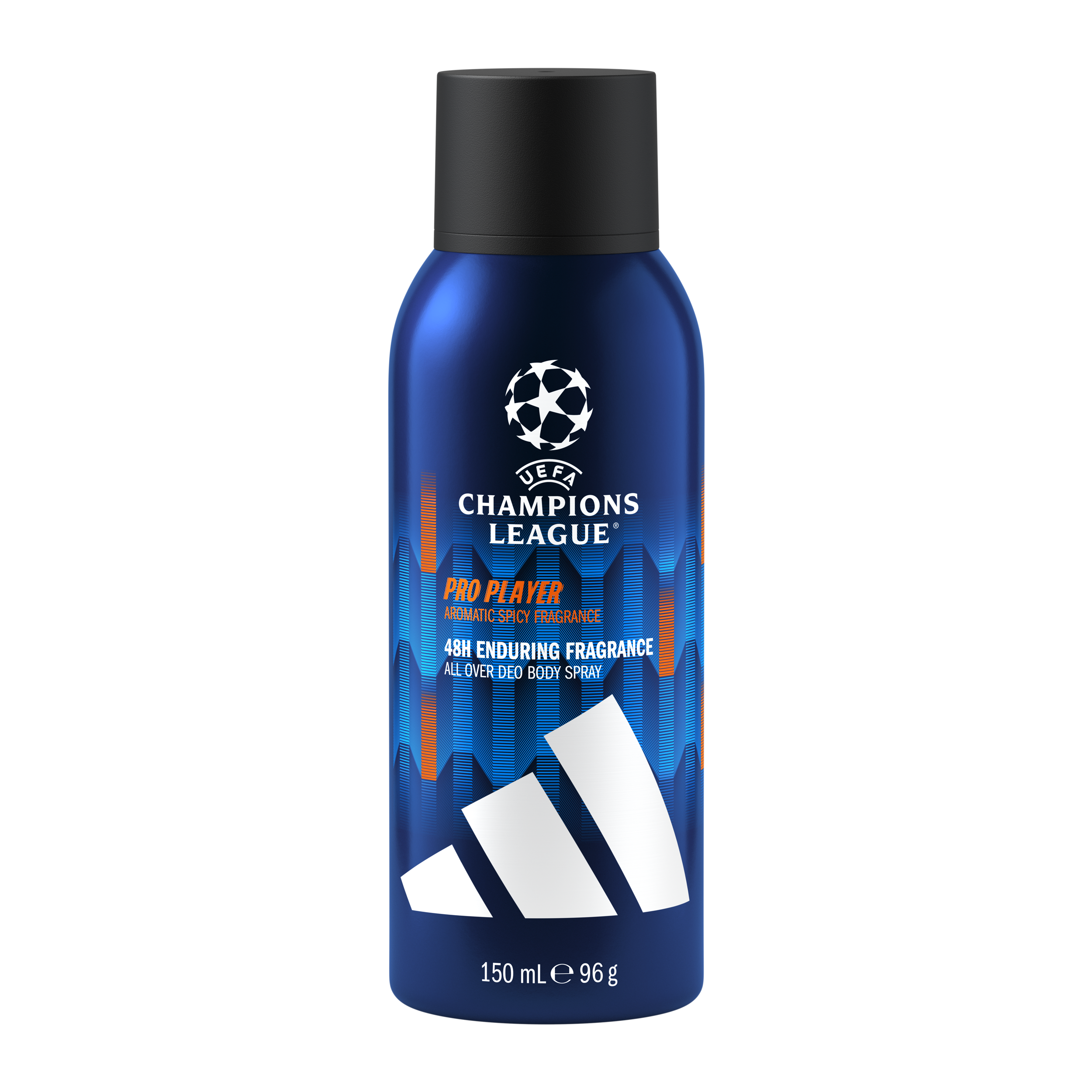 Objevte tělový sprej adidas UEFA Champions League PRO PLAYER Edition All Over. Vůně s přírodními esenciálními oleji z černého pepře a tóny levandule. Svěží a kořeněný závan svěžesti se rozplývá v hřejivém jádru, které se prohlubuje v dřevitou a podmanivou vůni.