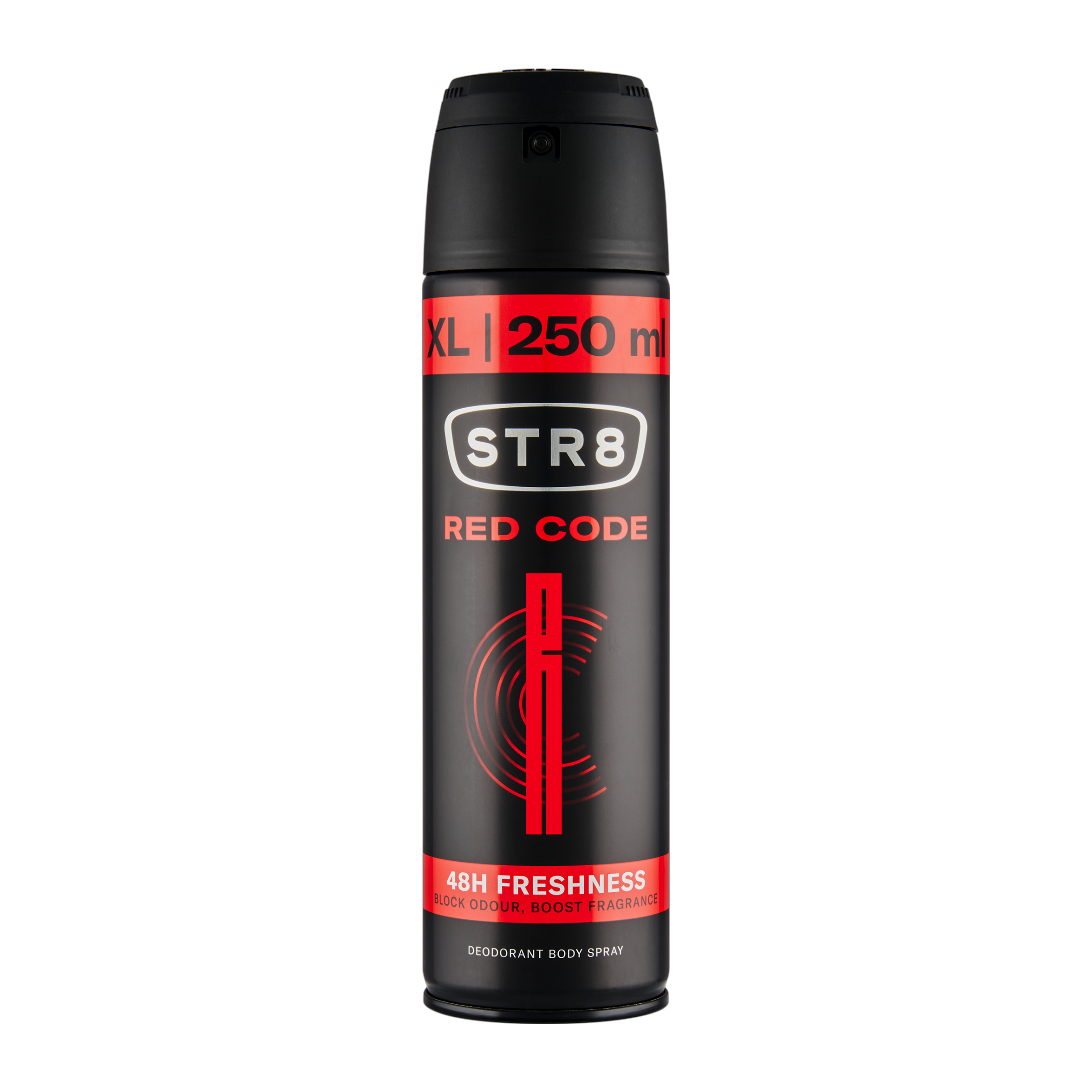 STR8 Red Code, to je zásah čisté energie pro muže, který ví jak rozšifrovat podstatu života. Hlavu tvoří ananas a tóny moře smíchané s grepem a kardamonem. Srdce se skládá z levandule, pelargónie, jasmínu a tymiánu na těle tvořeného jantarem, jedlí a tonka boby.