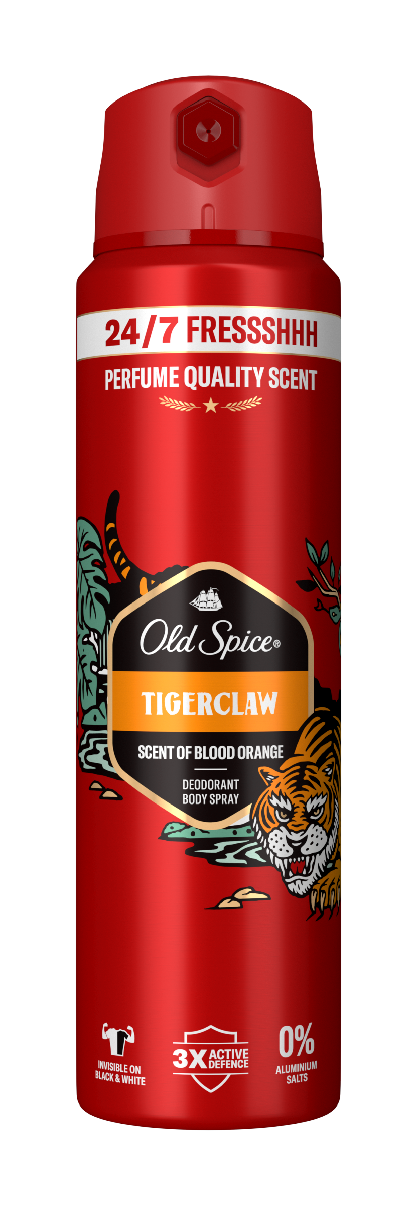 Dopřej si svěžest* 24 hodin denně, 7 dní v týdnu a voňtastické sebevědomí díky Tiger Claw deodorantu ve spreji Old Spice. A s touto úrovní bezstarostné svěžesti se můžeš soustředit na vyšší cíle, jako je uzavírání velkých obchodů nebo učení delfínů lidské řeči. UVOLNĚTE SLOŽENÍ 3× ACTIVE DEFENCE: Dlouhotrvající vůně / ochrana před zápachem / se složkami proti zápachu, takže budete vonět legendárně 24 hodin denně, 7 dní v týdnu* S touto citrusovou vůní s tóny krvavého pomeranče, grapefruitu a čistého pižma budeš mít chuť si sebevědomě zařvat jako skutečný král džungle. A zmínili jsme, že neobsahuje žádné hliníkové soli a zároveň je neviditelný na černém i bílém oblečení? Protože je to tak. *při každodenním používání