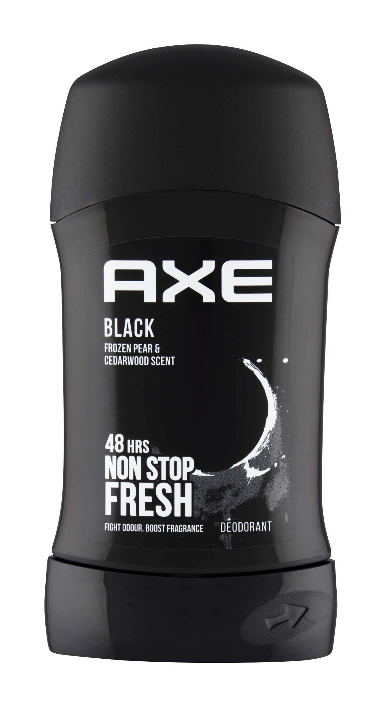 Požitek ze života, hrdost a sebevědomí. Absolutní kombinace zmrazené hrušky a cedrového dřeva umí překvapit svou intenzitou! Nový tuhý deodorant AXE Black vás s dokonalou svěžestí provede i samotným peklem! Garantuje 48hodinou účinnost, díky své gelové konzistenci se příjemně nanáší, neumaže tričko ani drahou košili, opravdu dobře voní a nepodráždí ani po holení.
