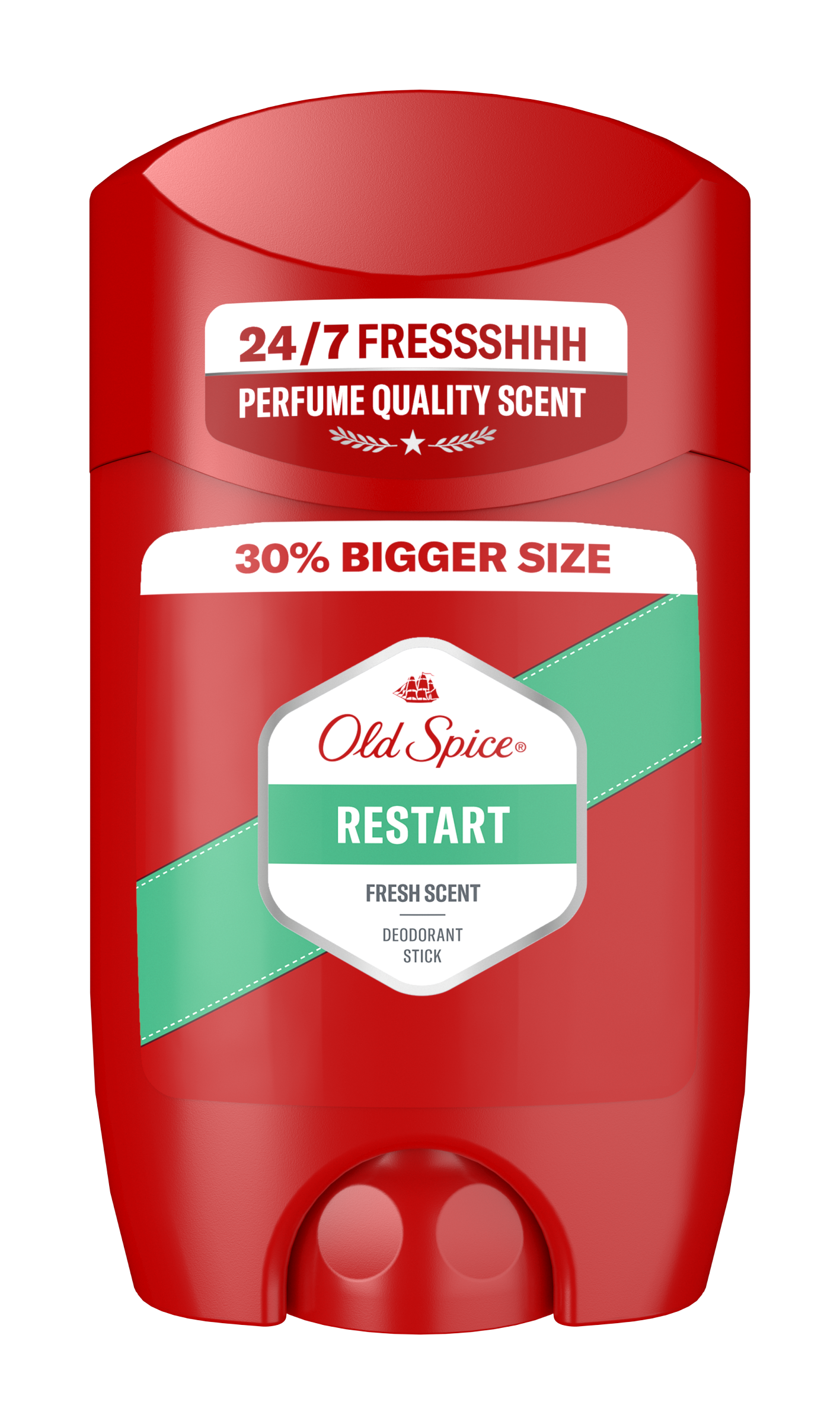 Dopřej si svěžest* 24 hodin denně, 7 dní v týdnu a voňtastické sebevědomí díky tuhému deodorantu pro muže Old Spice Restart. A s touto úrovní bezstarostné svěžesti se můžeš soustředit na vyšší cíle, jako je uzavírání velkých obchodů nebo učení delfínů lidské řeči. Vyzkoušej tuhý deodorant pro silnou ochranu proti zápachu v podpaží díky suché a snadné aplikaci (v porovnání s deodorantem ve spreji Old Spice). Uvolněte složení 3x Active Defence: Dlouhotrvající vůně / ochrana před zápachem / se složkami proti zápachu, takže budete vonět legendárně 24 hodin denně, 7 dní v týdnu*. Díky svěží vůni bergamotových citrusů s tóny santalového dřeva se budeš cítit tak, jako by ses právě probudil z osvěžujícího zdřímnutí. A zmínili jsme, že neobsahuje žádné hliníkové soli a zároveň je neviditelný na černém i bílém oblečení? Protože je to tak.
