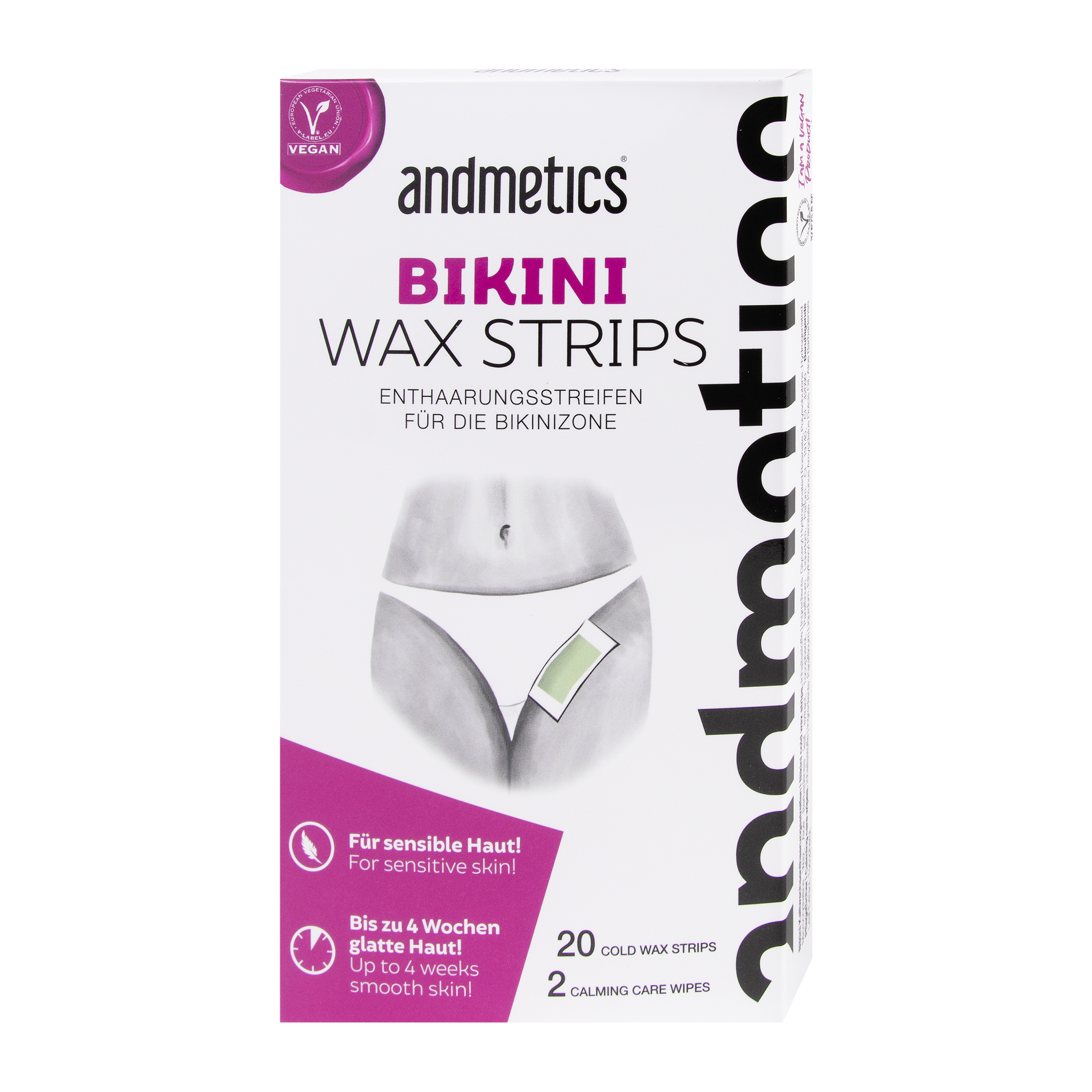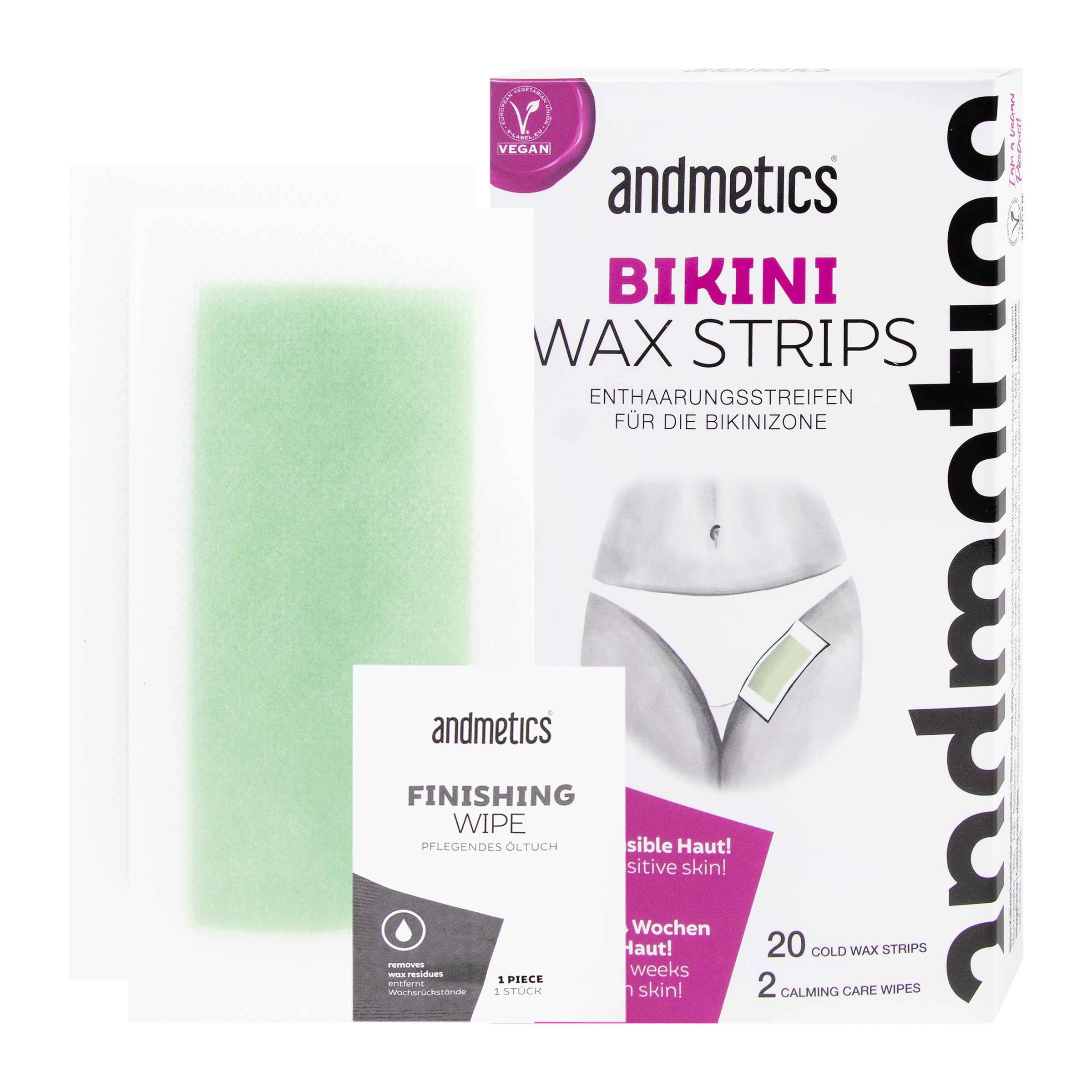 Používání žiletek na jemnější oblasti pokožky je minulostí. Voskové proužky Andmetics Bikini pro citlivé oblasti bikin jsou navrženy tak, aby dokonale zapadly do křivek oblasti bikin a jsou menší než běžné voskové proužky na tělo. Naše vysoce kvalitní proužky jsou veganské a obsahují zklidňující extrakt z aloe vera, aby se zabránilo podráždění citlivé pokožky. Ultra hladké výsledky vydrží až 4 týdny. Proužky jsou připravené ihned k použití - není třeba je před použitím předehřívat. Odstranění chloupků v pohodlí vašeho domova je nyní snazší než kdy dříve.