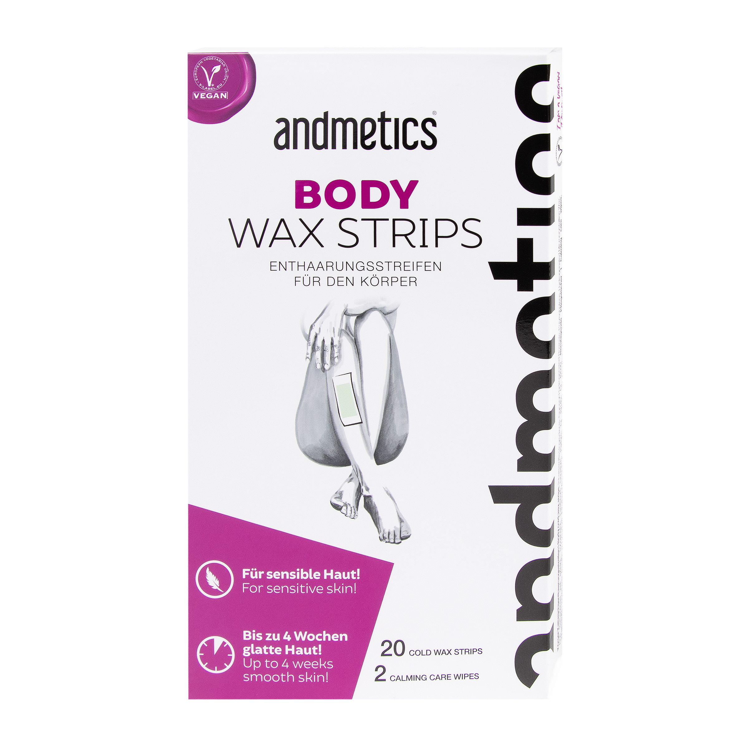 Voskové pásky Andmetics Body na celé tělo odstraňují chloupky během několika minut a lze je použít na nohy, ruce nebo záda v pohodlí vašeho domova. Aplikace je snadná a bezpečná. Proužky jsou připravené k použití - není třeba je před použitím předehřívat. Vysoce kvalitní proužky jsou veganské a obsahují zklidňující extrakt z aloe vera, aby se zabránilo podráždění citlivé pokožky. Ultra hladké výsledky vydrží až 4 týdny.