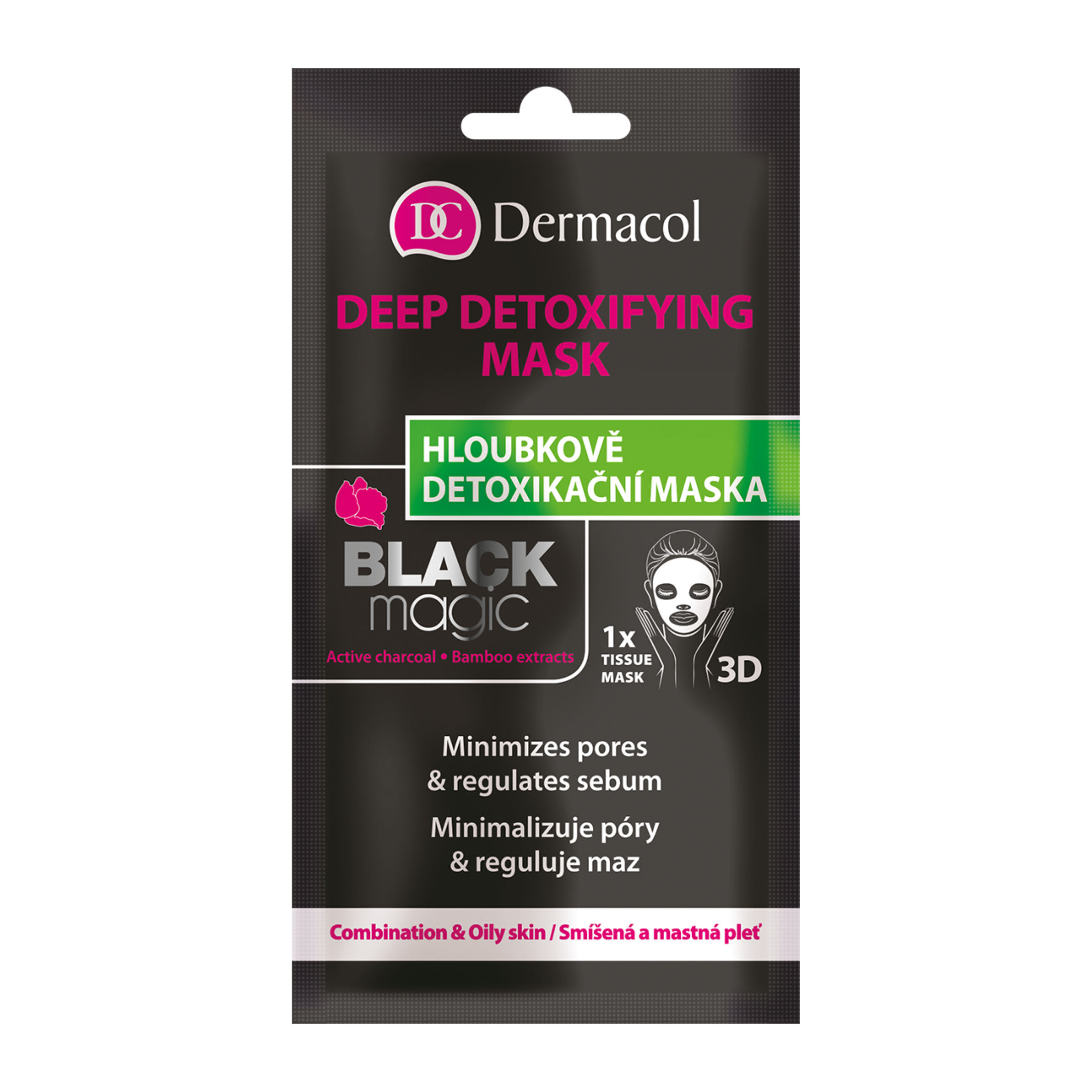 Textilní maska 3D s aktivním uhlím, Hloubkově detoxikuje pleť. Čistí a stahuje rozšířené póry, tím navrací vitalitu a svěžest zašedlé pokožce.