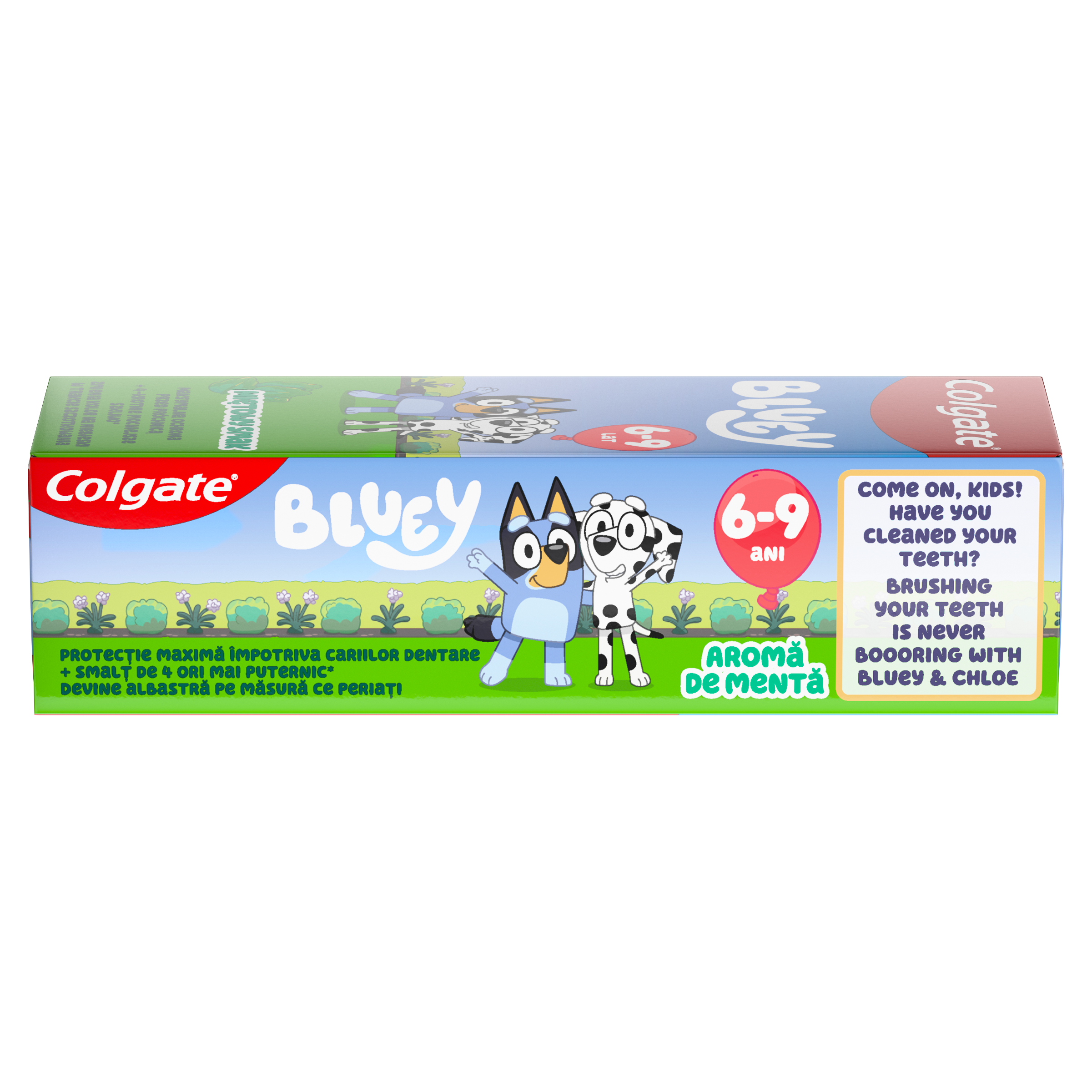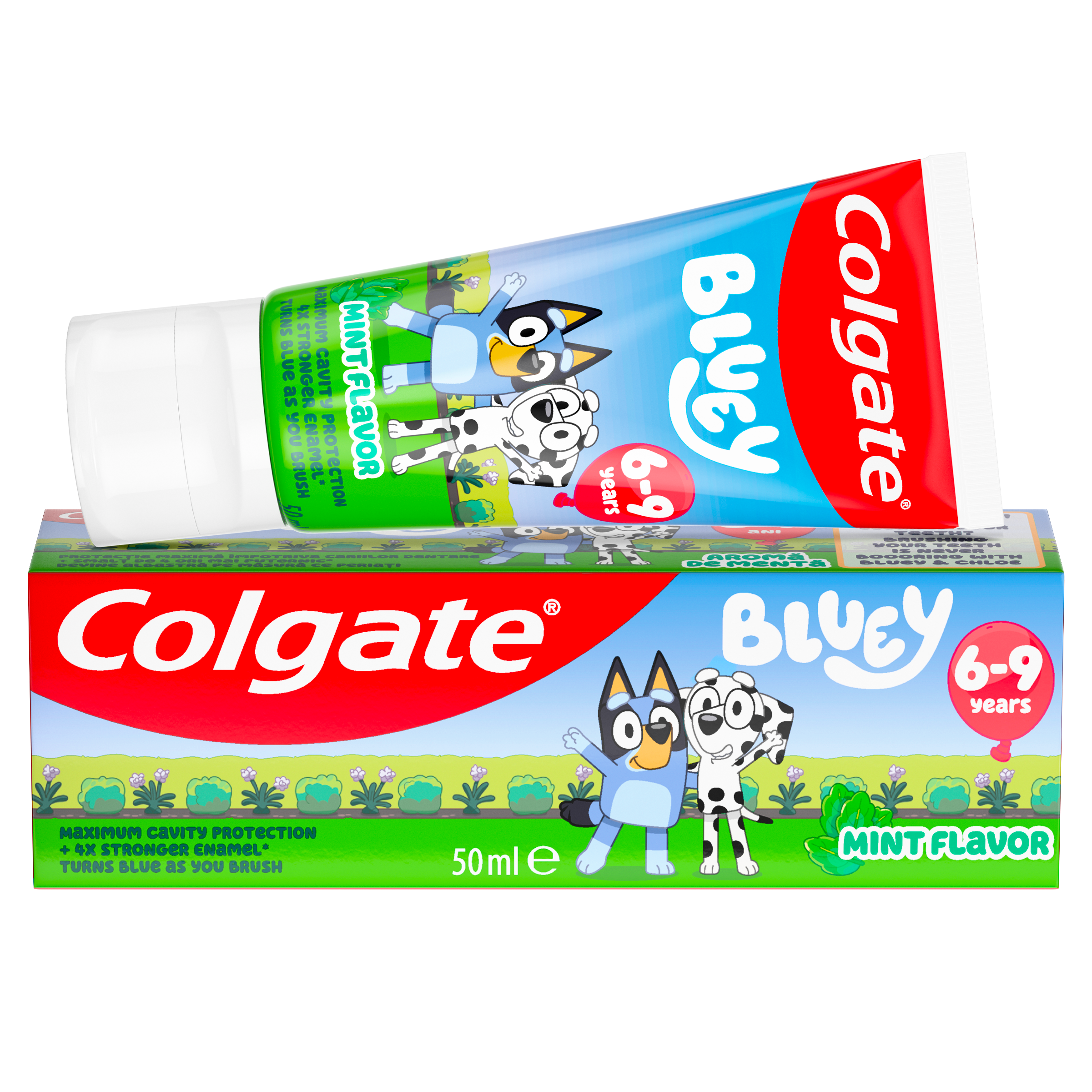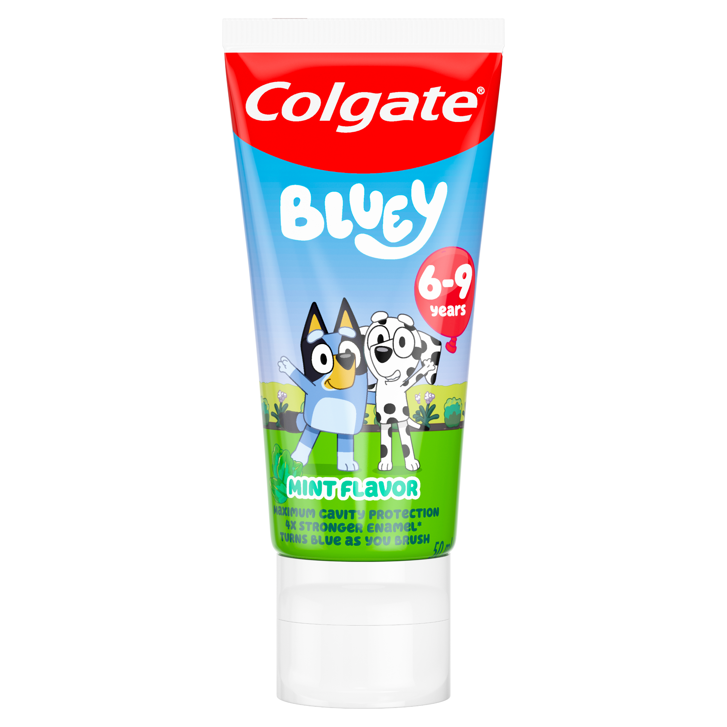 Pomozte svým dětem vypěstovat si zdravý zvyk čištění zubů! S dětskou zubní pastou Colgate Kids Bluey 6+ let může být každodenní čištění s Bluey a Chloe tou nejoblíbenější částí dne. Tato zubní pasta při čištění zmodrá, takže děti bude bavit sledovat její proměnu a zároveň jim pomůže vydržet čistit zoubky celé 2 minuty! Tato pasta je speciálně vyvinutá pro děti od 6 do 9 let a obsahuje doporučené množství fluoridu, které pomáhá chránit jejich rostoucí úsměvy. Má jemnou mátovou příchuť, kterou si děti zamilují a poskytuje maximální ochranu před zubním kazem - díky tomu máte jistotu, že děláte pro svoje děti to nejlepší. Navíc tato dětská zubní pasta pomáhá zpevnit jejich sklovinu a udělat jí až 4x silnější*, takže můžete s radostí sledovat, jak se z jejich prvních úsměvů stávají široké a zářivé – stejně jako u Bluey a Chloe. S touto měnící se zubní pastou se z čištění stává zábava. Tak hurá na to! *Změna obsahu minerálů po 2 týdnech oproti běžné fluoridové zubní pastě.