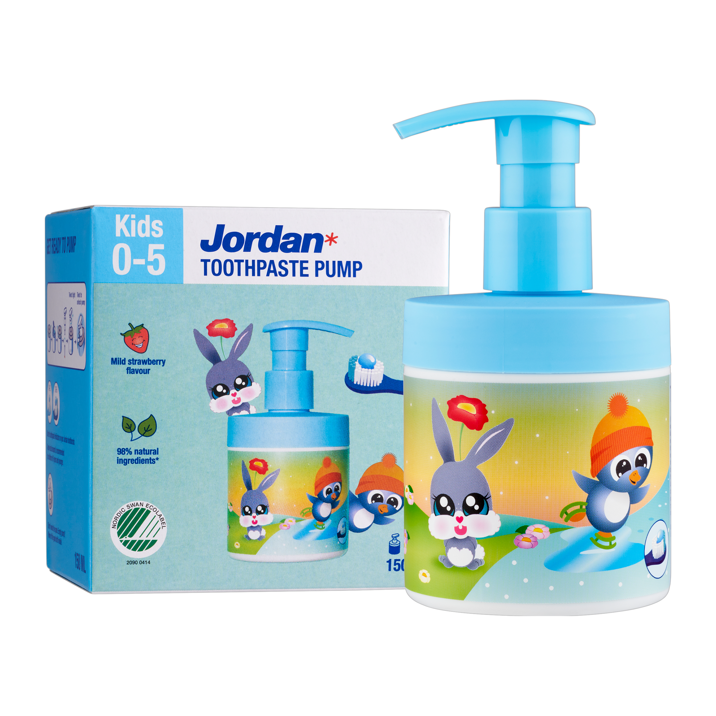 Zubní pasta Jordan Kids v pumpičce je ideální volbou pro děti ve věku 0-5 let, které teprve začínají pečovat o své zuby. Tato pasta má jemnou ovocnou chuť, díky které je každodenní ústní hygiena příjemnější. Doporučená hladina fluoridu 1000 ppm zajišťuje účinnou ochranu před zubním kazem, což je velmi důležité u mléčných zubů. Díky tvaru obalu je používání výrobku snadné a příjemné i pro nejmenší děti. Úsměv vašeho batolete je nejdůležitější. Až 98 % složek pasty pochází z přírodního zdroje. Je bezpečná pro jemnou ústní dutinu dětí. Pasta Jordan Kids je k dispozici v balení po stabilním plastovém obalu o objemu 150 ml. Díky této zubní pastě si vaše dítě může užívat zdravé a krásné zuby již od útlého věku.