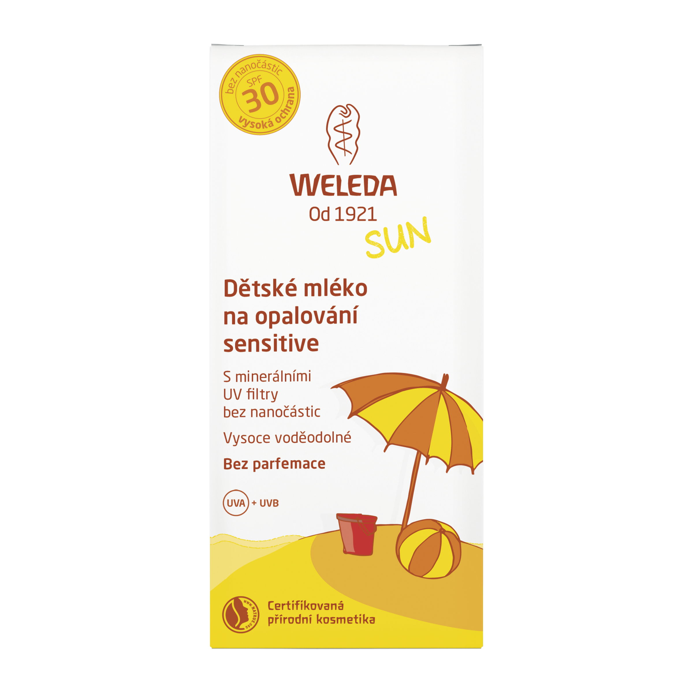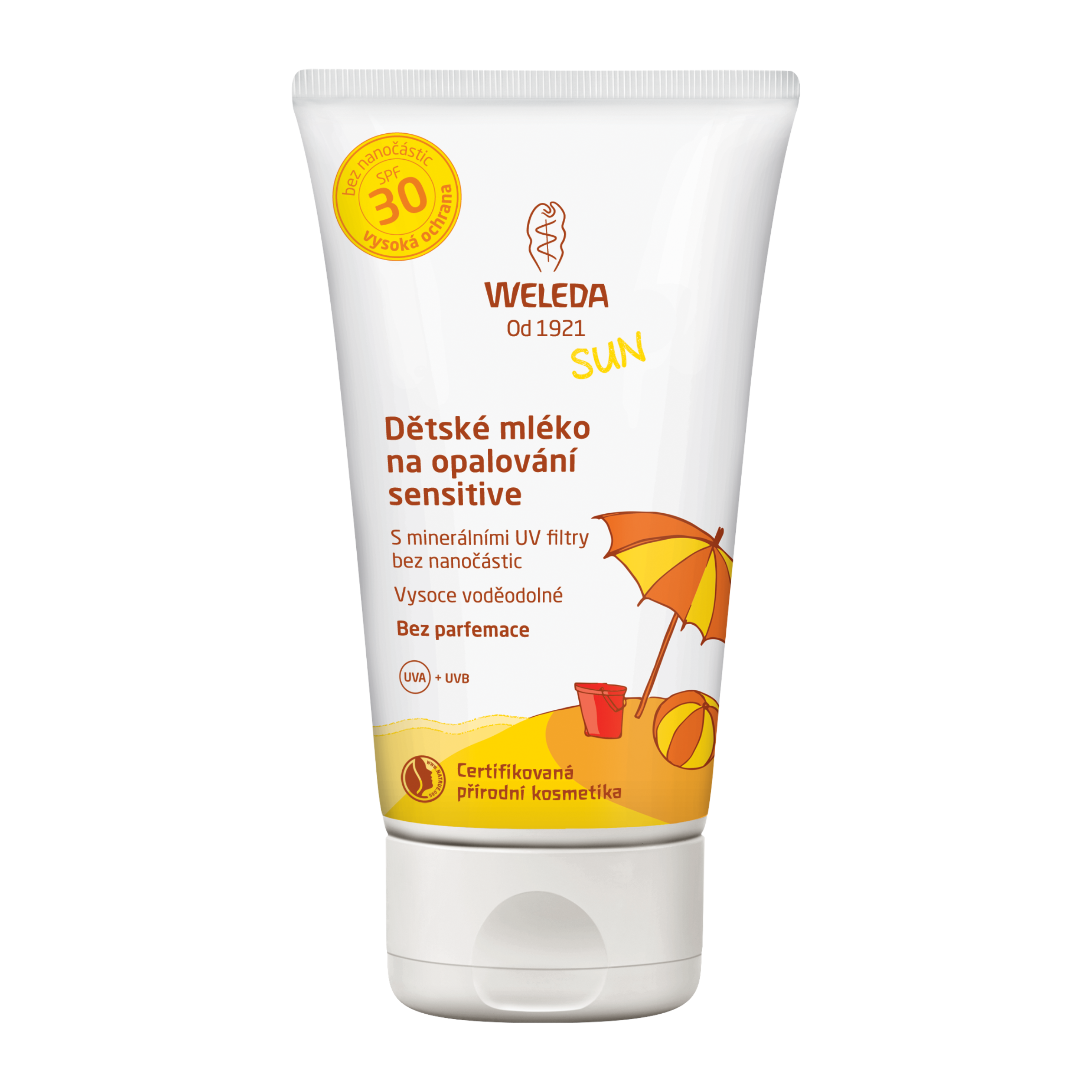 Vysoce voděodolné tělové mléko na opalování SPF 30 pro děti. Poskytuje spolehlivou ochranu proti UVA a UVB paprskům ihned po aplikaci. Obsahuje pouze minerální UV filtry bez nanočástic. Vhodné pro velmi citlivou pokožku. Výtažek z protěže alpské působí jako antioxidant, chrání pokožku před poškozením UV zářením, chrání DNA, zmírňuje stárnutí kůže a tvorbu vrásek. Rostlinné oleje ze slunečnice a kokosu v BIO kvalitě uchovávají pokožku hydratovanou a zlepšují její ochranu. Opalovací krém je navíc vysoce voděodolný, což jistě potěší hlavně malé děti, které si rády hrají ve vodě. Díky složení bez obsahu nanočástic a parfemace je krém navíc vhodný i pro velmi citlivou pokožku.