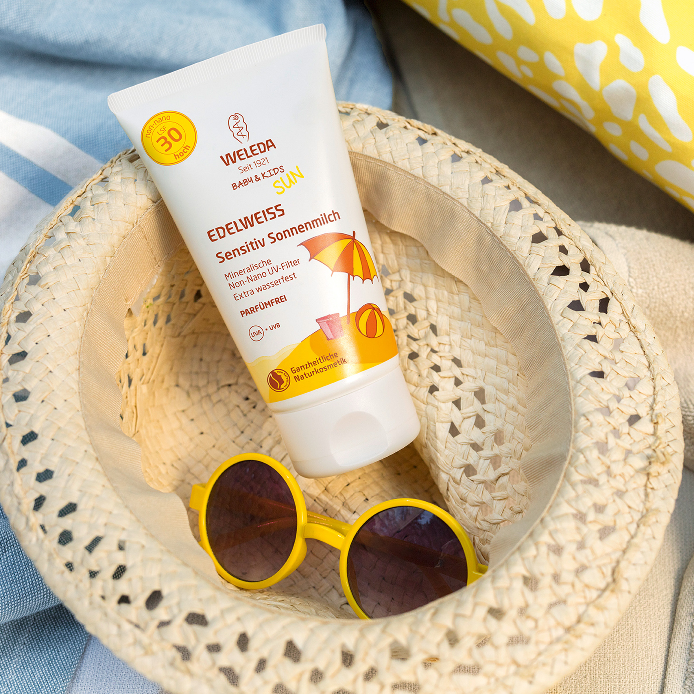 Vyhněte se intenzivnímu polednímu slunci. Chraňte kojence a batolata před přímým slunečním zářením a používejte sluneční ochranu s vysokým slunečním faktorem (SPF vyšší než 25) a ochranný oděv. Dokonce ani opalovací krémy s vysokou úrovní sluneční ochrany neposkytují úplnou ochranu proti UV záření. I přes použití opalovacího krému nezůstávejte na slunci příliš dlouho. Každé spálení sluncem způsobuje trvalé poškození kůže a je třeba se mu vyhnout. Nadměrné opalování představuje vážné zdravotní riziko. Nechte opalovací krém úplně vsáknout. Vyvarujte se kontaktu s textiliemi - jsou možné trvalé skvrny. Vyhněte se kontaktu s očima.