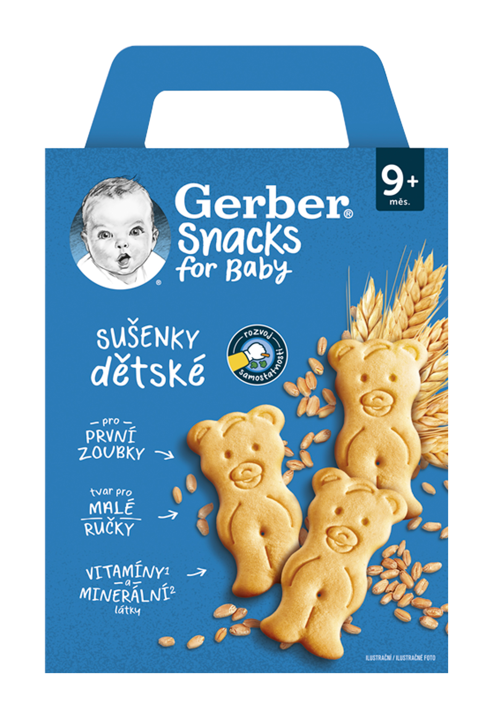 GERBER Snacks dětské sušenky jsou obohaceny o vitamíny a minerální látky, které jsou v tomto období klíčové pro správný růst2 a vývoj2 dětského organismu. Pro svou výbornou chuť jsou ideálním doplňkem snídaně nebo svačinky. Oceníte je především v období, kdy vaše děťátko začíná lézt, poznává nové tvary a dokáže již jídlo uchopit do svých ručiček. Při žvýkání sušenek se navíc masírují dásně, což podporuje lepší prořezávání prvních zoubků.