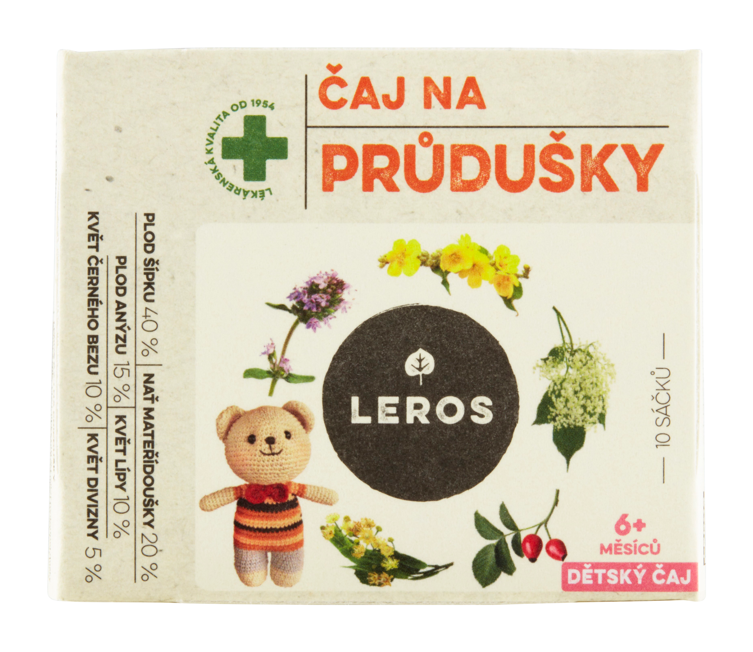 Plod šípku (40 %), Nať mateřídoušky (20 %), Plod anýzu (15 %), Květ lípy (10 %), Květ černého bezu (10 %), Květ divizny (5 %)
