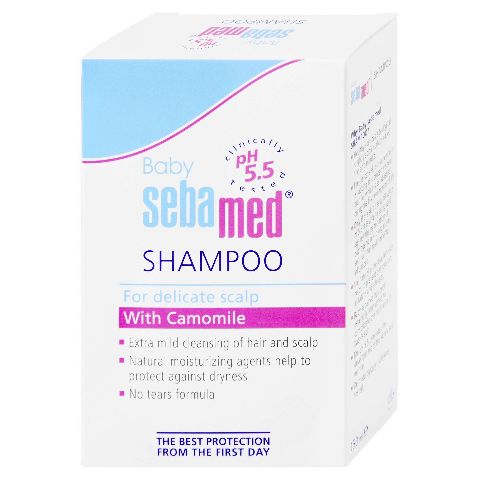 Dětský šampon je ideální pro péči o jemné dětské vlásky a pokožku hlavy. Minimalizuje riziko vysoušení a podráždění, podporuje zdraví pokožky hlavy pro růst zdravých vlásků. Rostlinný extrakt z heřmánku zklidňuje podráždění a zjemňuje pokožku hlavy. Hodnota pH 5,5 podporuje vývoj a obnovu přirozeného ochranného pláště kůže. 100 % bez mýdla a alkalických složek. Neobsahuje formaldehyd, nitrosamin a dioxin. Bez přidaných barviv S certifikátem ECARF – kosmetika vhodná i pro alergiky.