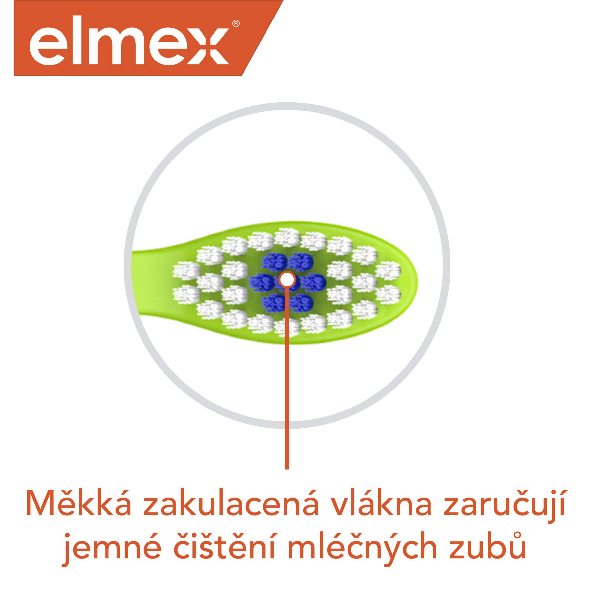 První samostatné čištění zoubků si zaslouží kartáček, který je šetrný, bezpečný a snadno se používá. Dětský kartáček na zuby elmex® Soft je navržený speciálně pro děti ve věku 3–6 let, kdy si osvojují správné návyky při každodenní dentální hygieně. Měkký kartáček je ideální pro citlivé mléčné zuby i dásně.