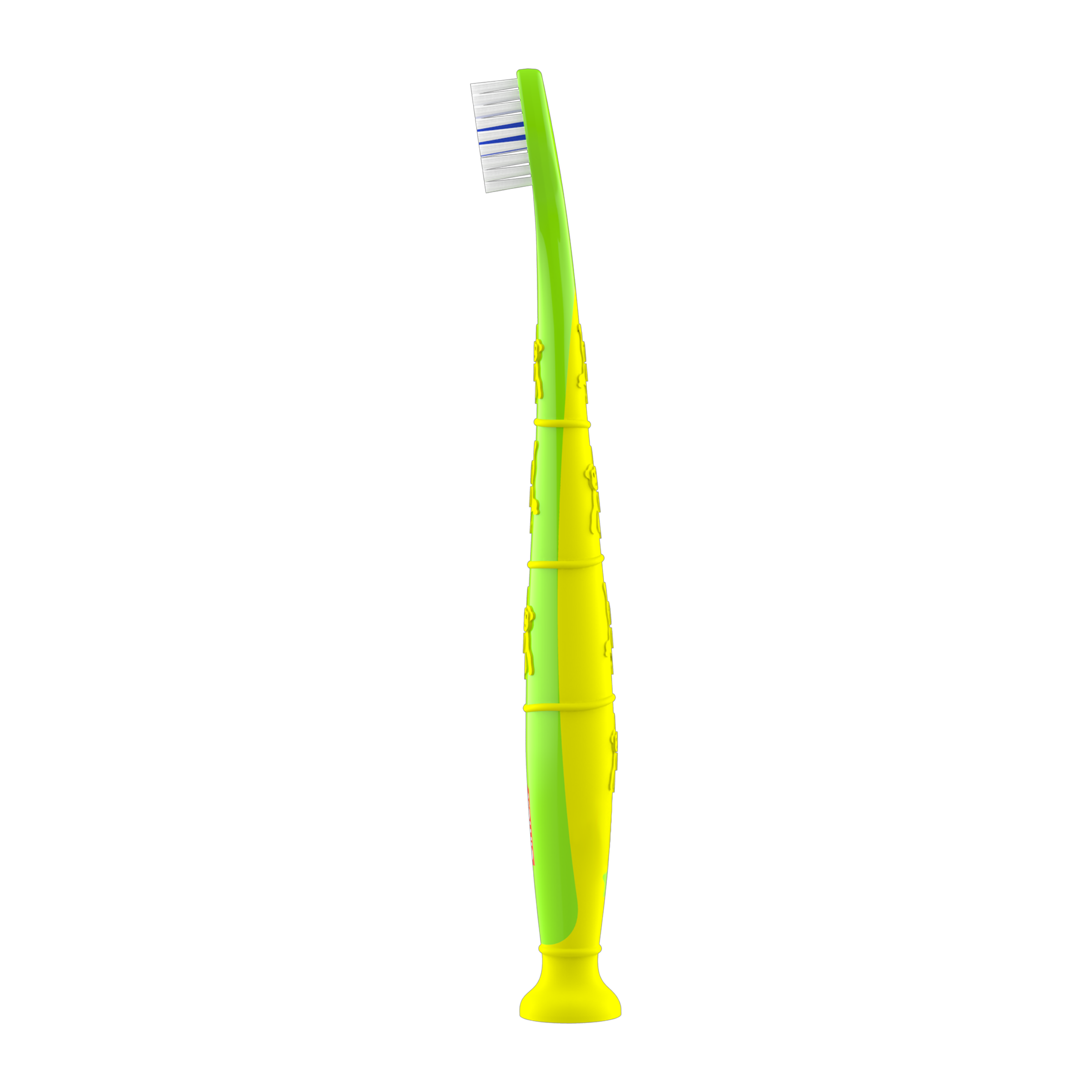 Praktická přísavka umožňuje kartáček postavit ve svislé poloze, což je nejen hygienické, ale i zábavné. Elmex tak podporuje pozitivní vztah dětí k čištění zubů už od útlého věku.