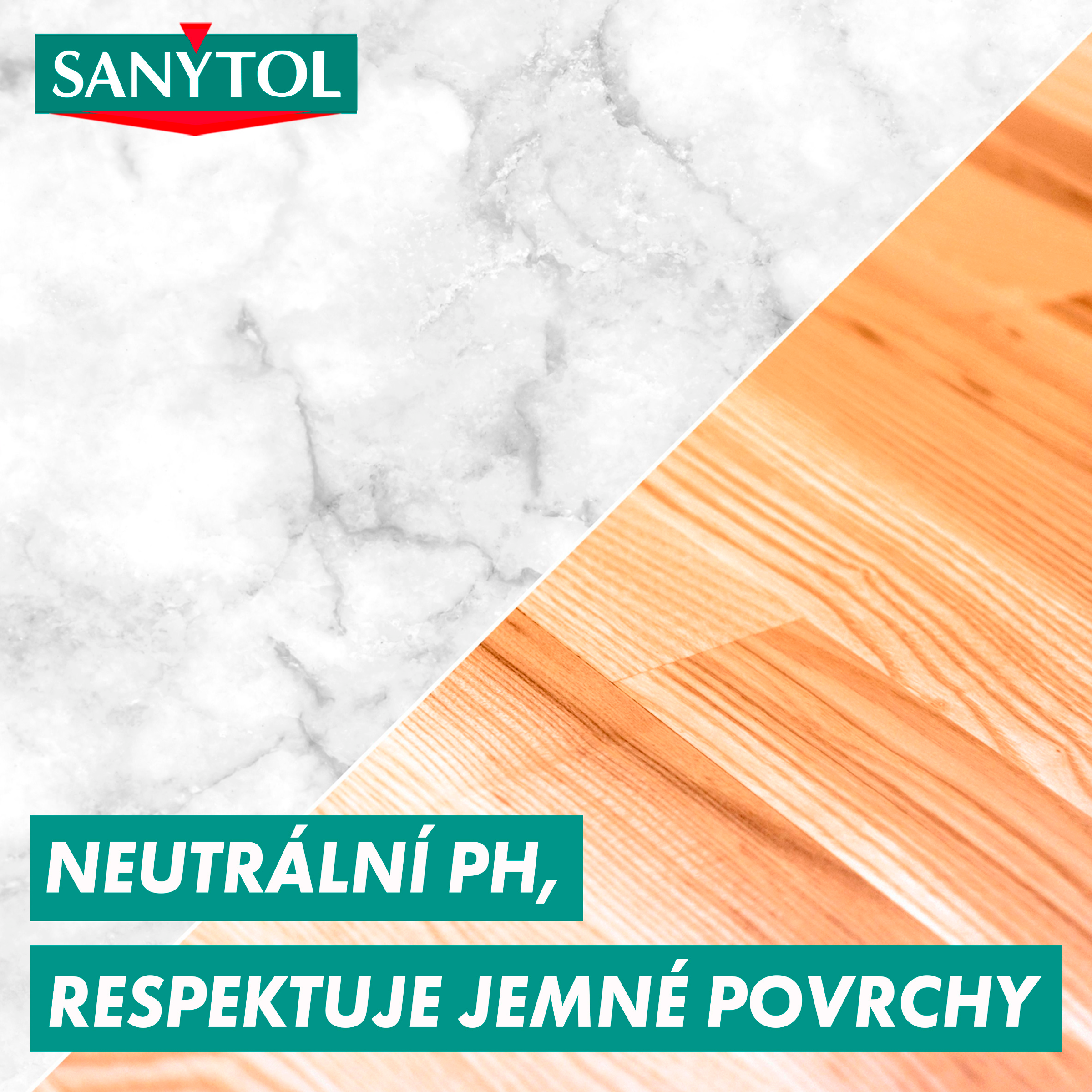Odstraňuje 99.9%* + bakterie, plísně, viry. Sanytol dezinfekce čistič podlahy & plochy - citrón & olivové lístky clean odstraňuje bez námahy nečistoty a dezinfikuje do hloubky.