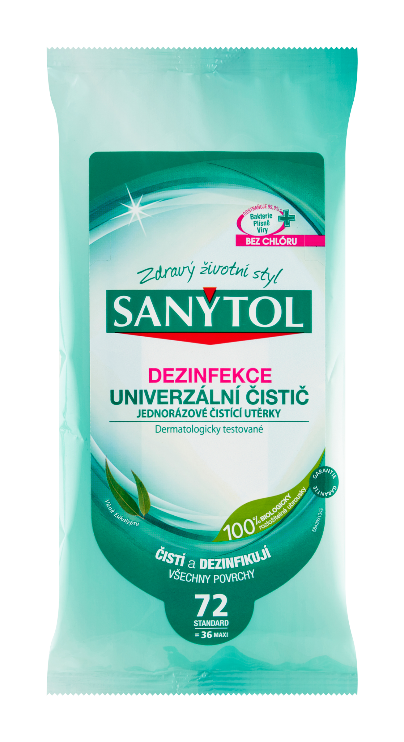 Vlastnosti univerzálních čisticích utěrek Sanytol: