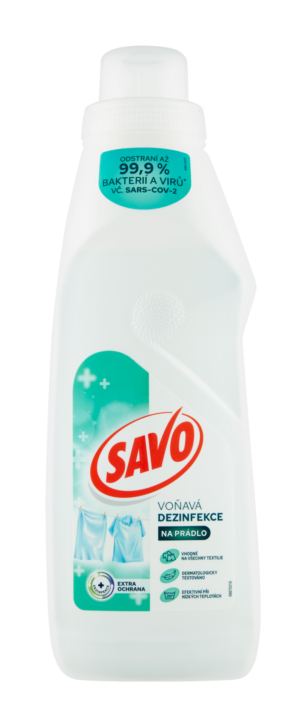 Odstraní až 99,9 % bakterií a virů* vč. SARS-CoV-2. Savo dezinfekce na prádlo odstraňuje 99,9% virů* a bakterií. Tekutý přípravek je účinný již při krátkém pracím cyklu a při nízkých teplotách (od 20°C). Je vhodný na všechny druhy textilu. Pro dezinfekci prádla jednoduše přidejte do přihrádky pro aviváž.