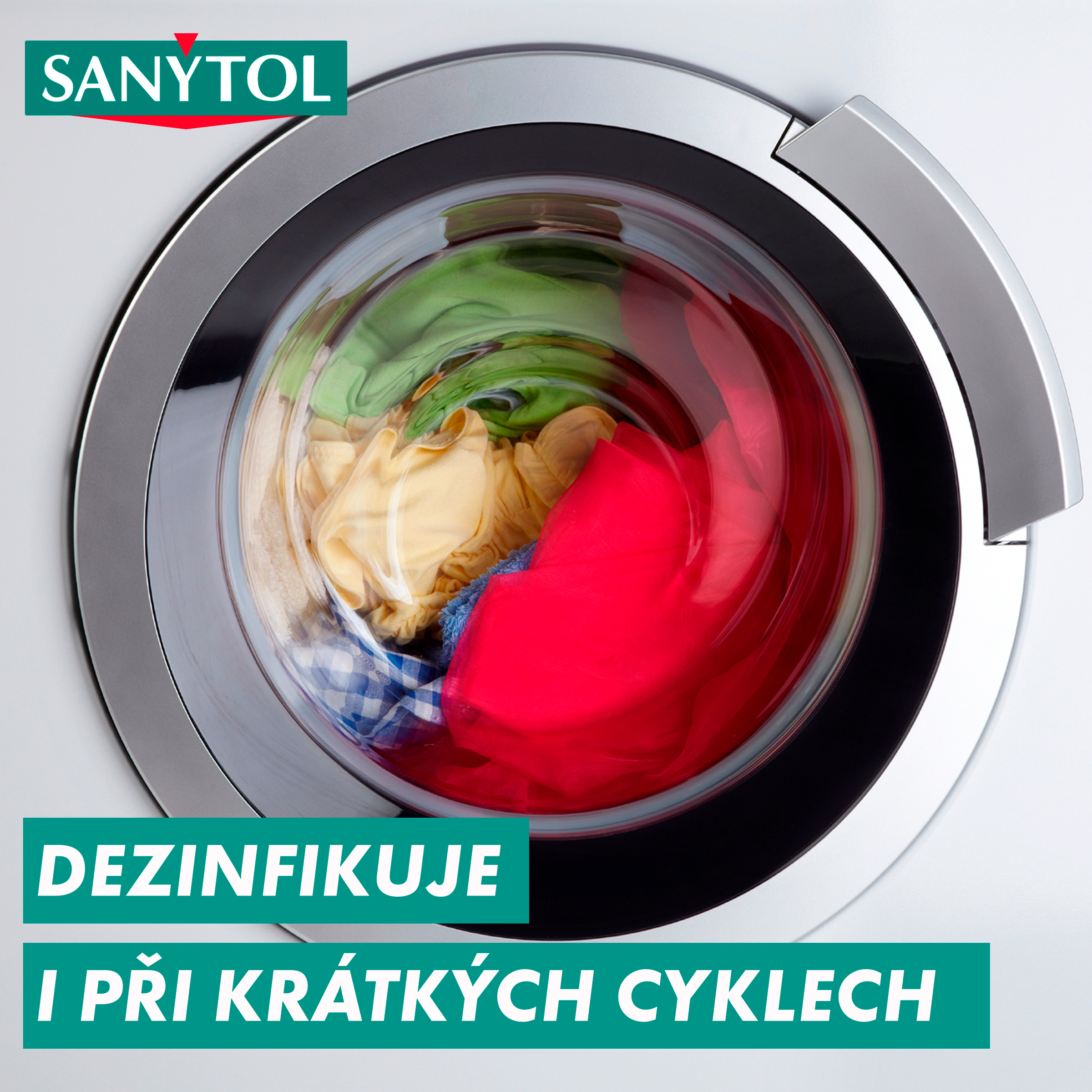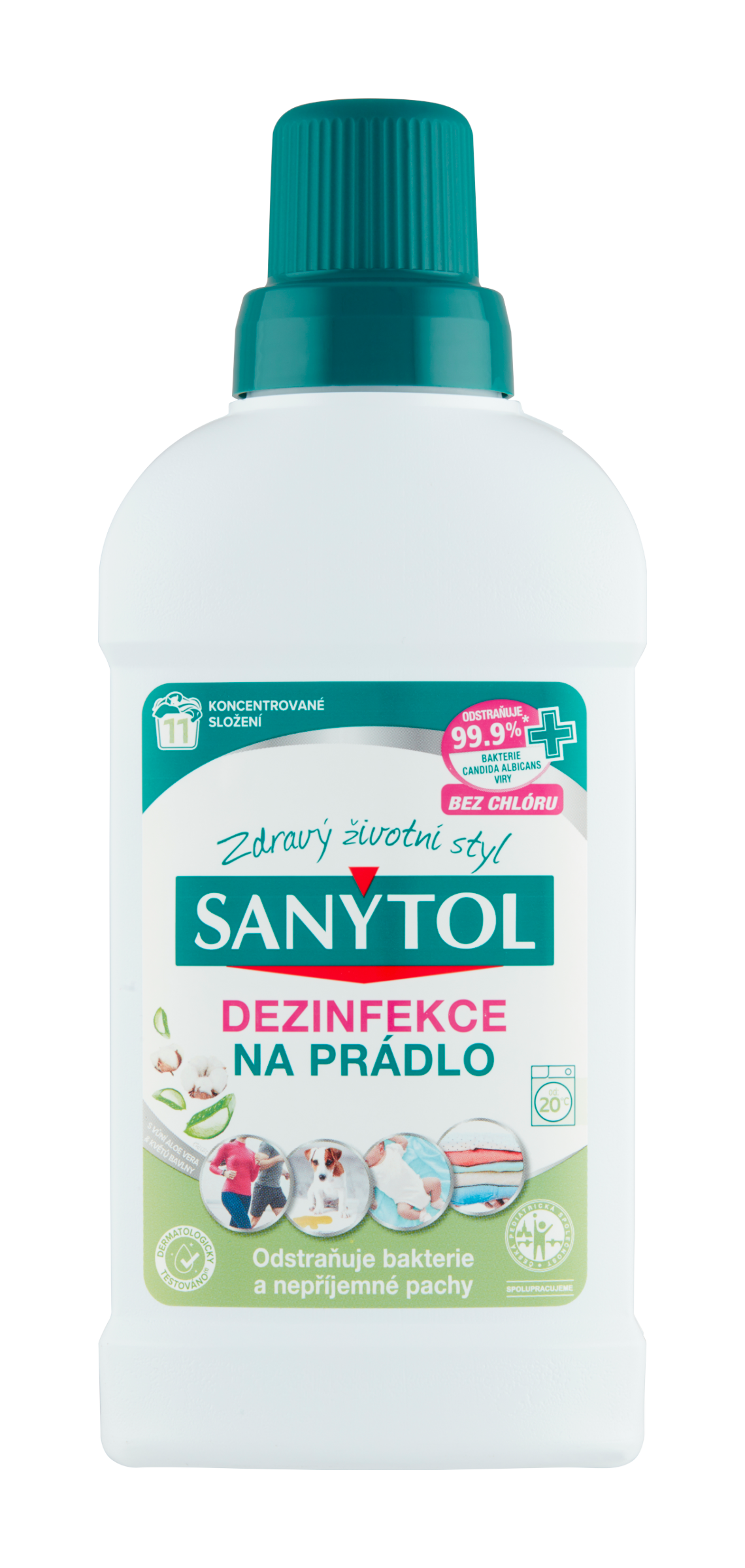 Odstraňuje 99.9%* bakterie, Candida Albicans, viry. Dermatologicky testováno⁽¹⁾. Dezinfekční přípravek na prádlo a pračky. Během praní při nízkých teplotách se prádlo vypere, ale není vydezinfikováno. Sanytol ničí při všech teplotách bakterie, viry, plísně, zbytky pracího prášku a vodního kamene a zanechává úžasný pocit svěžesti. Určený pro bílé i barevné textilie, neobsahuje chlór, ani složky, které by mohly narušovat vlákna či barvu textilie.