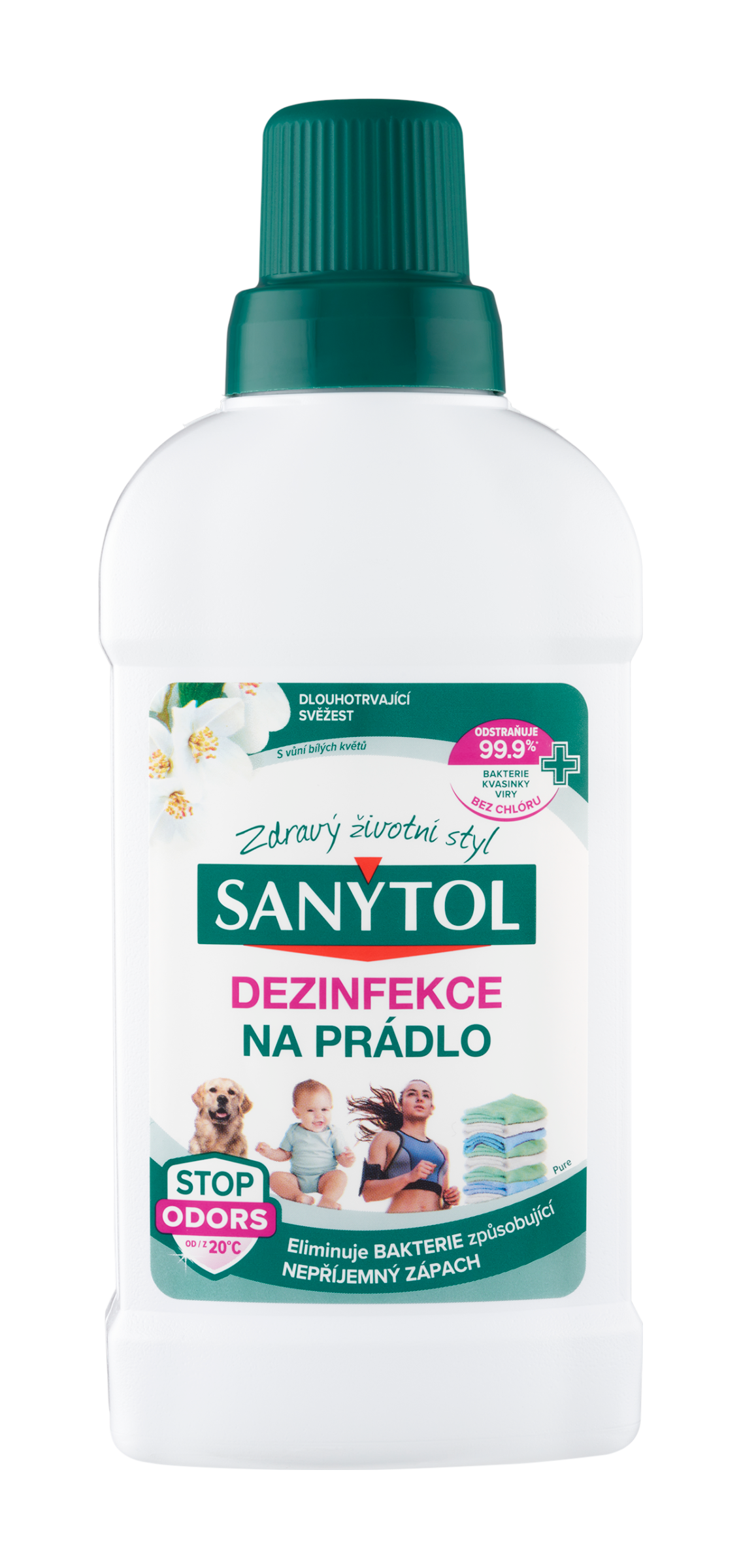 Odstraňuje 99.9%* bakterie, kvasinky, viry. Dezinfekce na prádlo eliminuje bakterie způsobující nepříjemný zápach. Po běžném praní mohou na oblečení zůstat mikroby nebo zbytky pracího prášku, které mohou způsobit přetrvávající zápach. Sanytol dezinfekce na prádlo s vůní bílých květů díky svému trojímu účinku eliminuje bakterie, kvasinky, viry a tím odstraňuje příčinu nepříjemných pachů v prádle. Účinný i při nízkých teplotách a krátkých pracích cyklech. Neobsahuje chlór. Pro všechny bílé a barevné oděvy (bavlna, syntetika, vlna, hedvábí,...). Sanytol odstraňuje i biofilm, který způsobuje nepříjemný zápach uvnitř vaší pračky. Dermatologicky testováno na textiliích, které byly v produktu vyprány v souladu s návodem k použití. Trojí účinek Dezinfikuje oblečení Odstraňuje nepříjemné pachy Zanechává svěží a dlouhotrvající vůni.