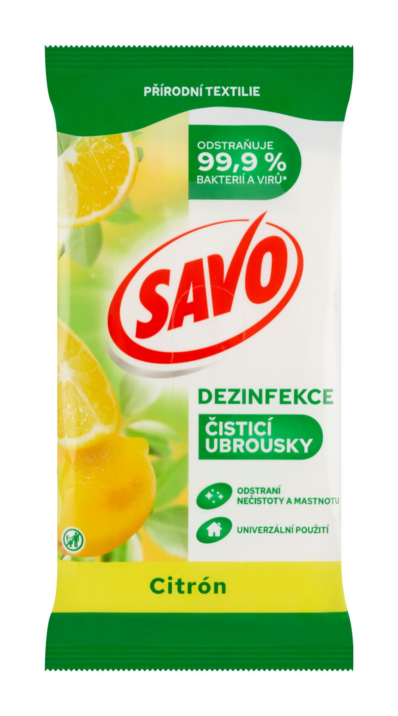 Savo dezinfekční čisticí ubrousky s vůní citrónu efektivně čistí a dezinfikují všechny omyvatelné povrchy. Jsou vhodné k univerzálnímu použití v domácnosti. Odstraňují nečistoty a mastnotu a také 99,9% bakterií a virů*. Navíc odstraňují i alergeny (způsobené prachem, pylem a přítomností psa nebo kočky). Svěží vůně citrónu provoní celou vaší domácnost. Ubrousky jsou vyrobeny z přírodní textilie.