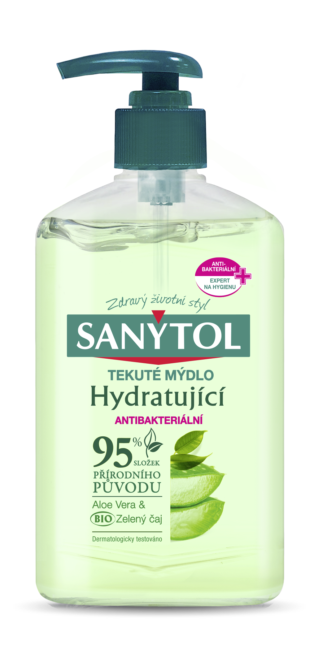 SANYTOL, expert na hygienu, vyvinul antibakteriální tekuté mýdlo na ruce, vyrobené z 95 % složek přírodního původu s výtažky Aloe Vera & BIO Zeleného čaje se zjemňujícími a hydratujícími účinky.