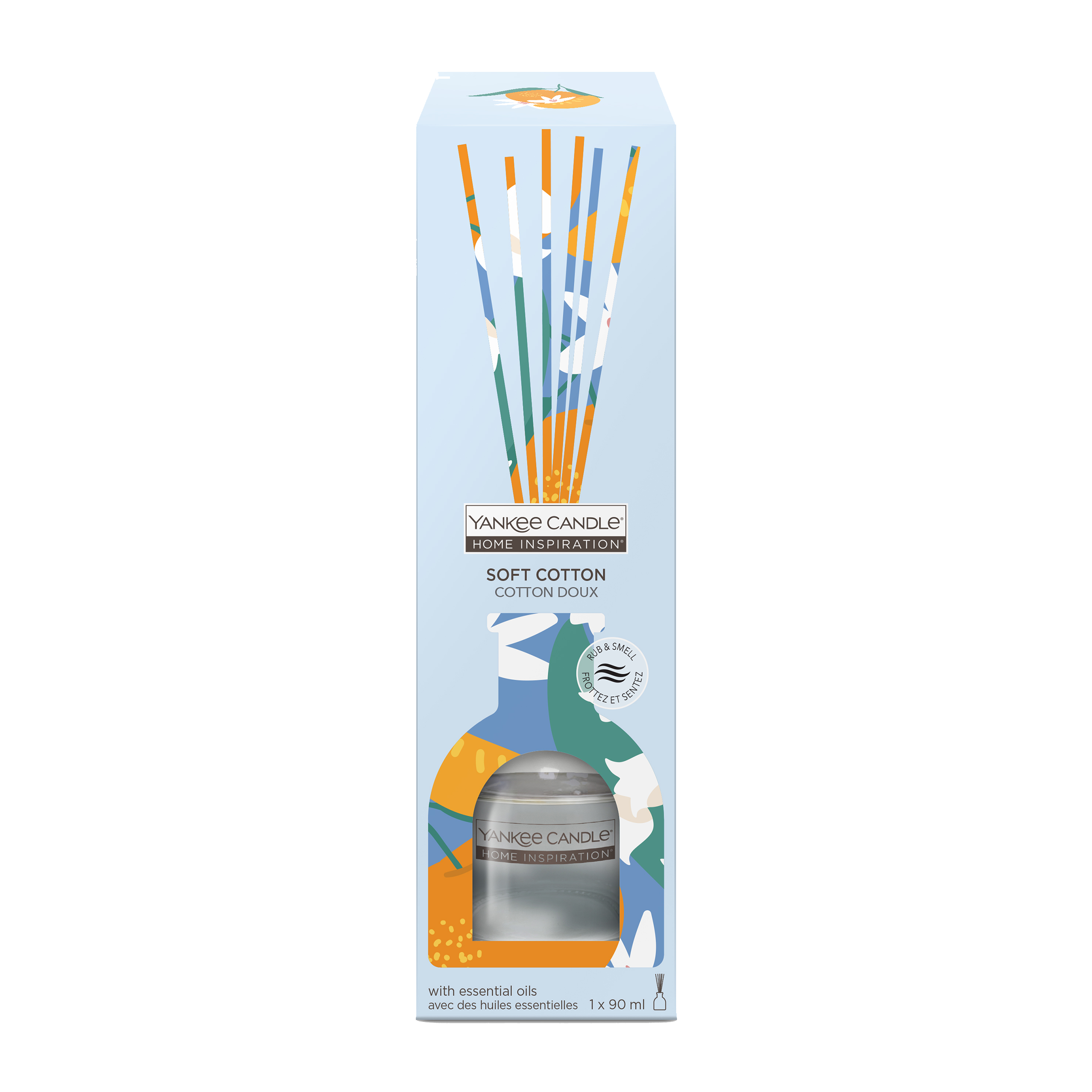 Yankee Candle Home Inspiration rákosový difuzér Soft Cotton - tak svěží a vzdušný! Čistá, uklidňující vůně měkkých, nadýchaných ručníků právě vytažených ze sušičky.