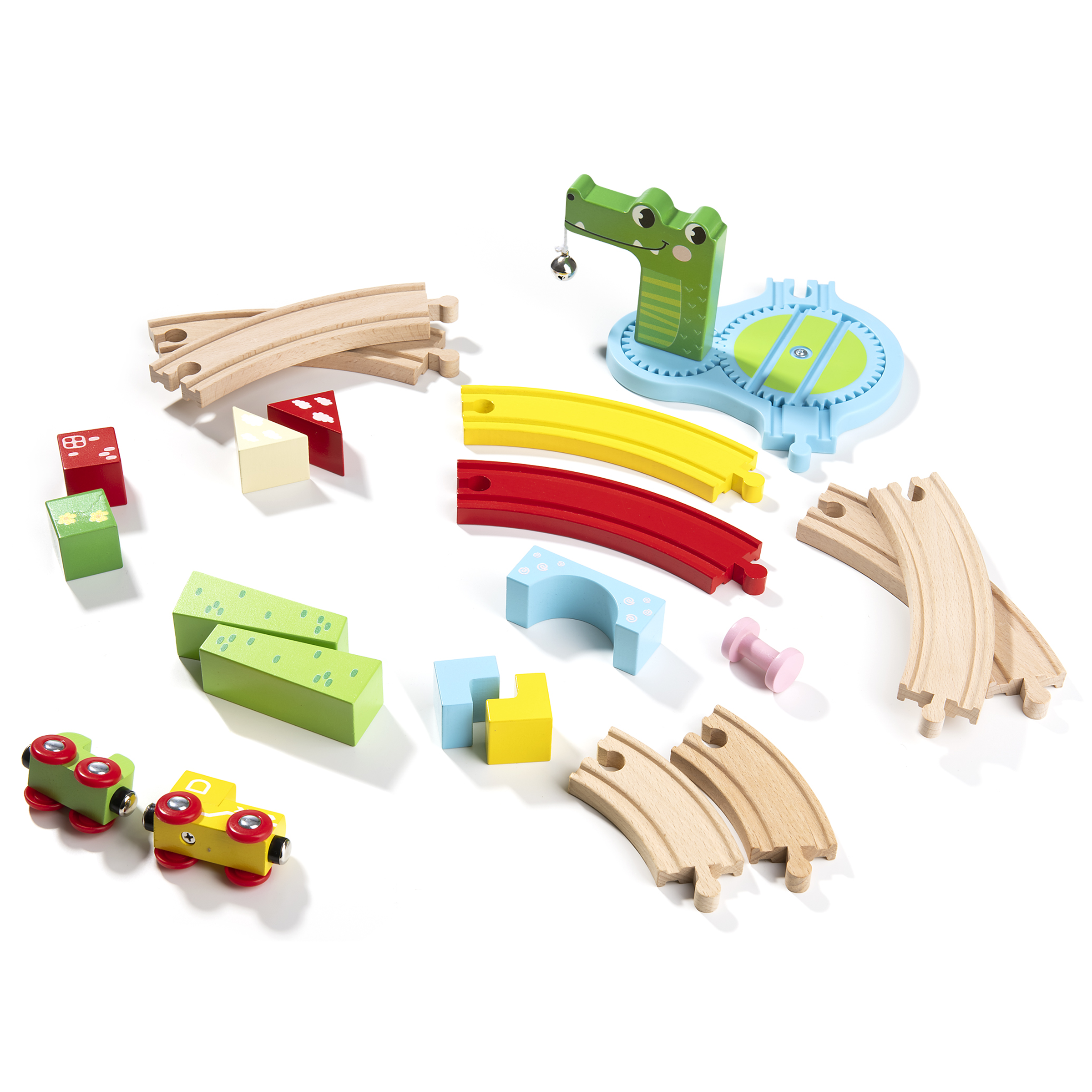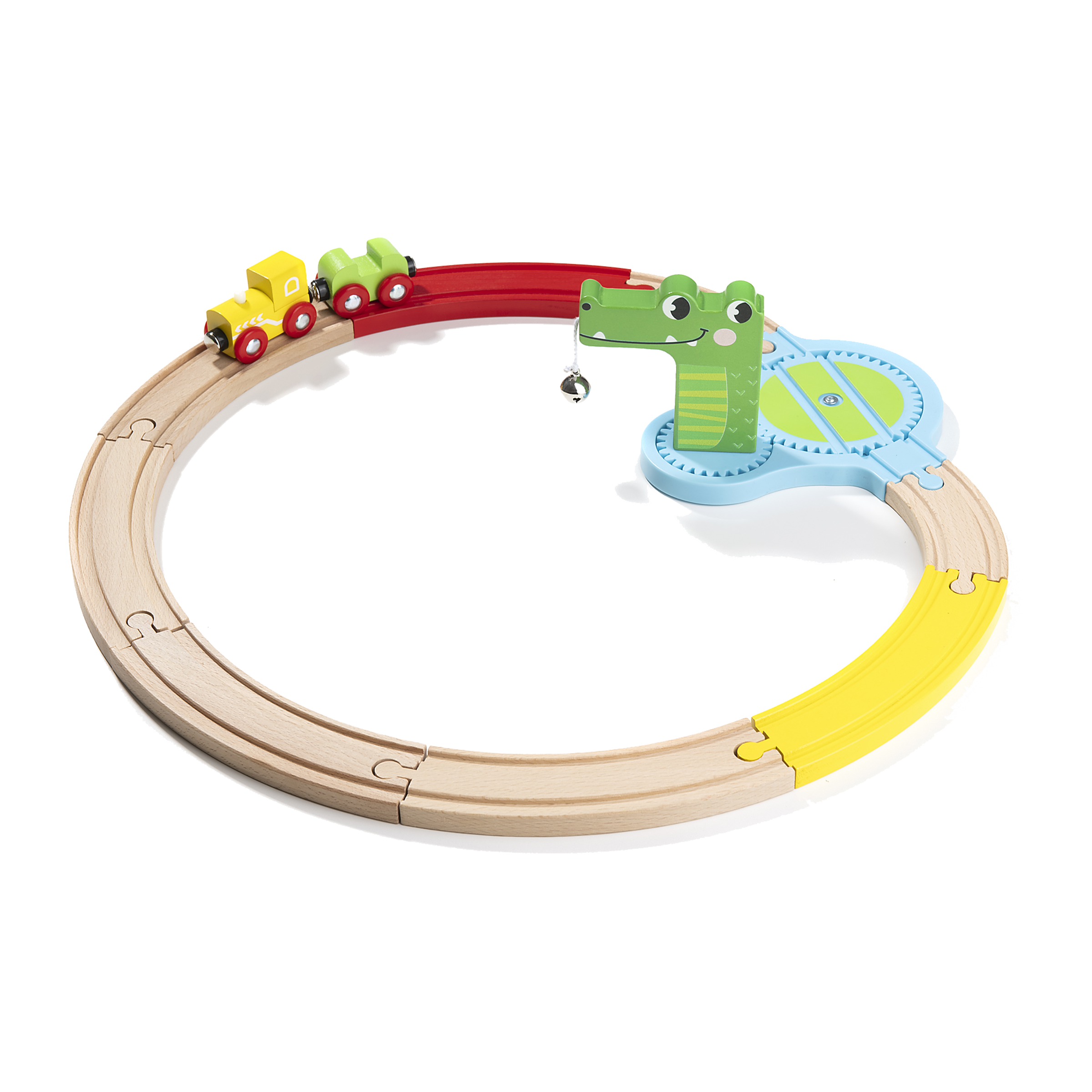 - sada obsahuje: 8 kolejnic, 1 výhybku s krokodýlem a zvonkem, 1 vláček s 1 vagónkem, 9 kosteK