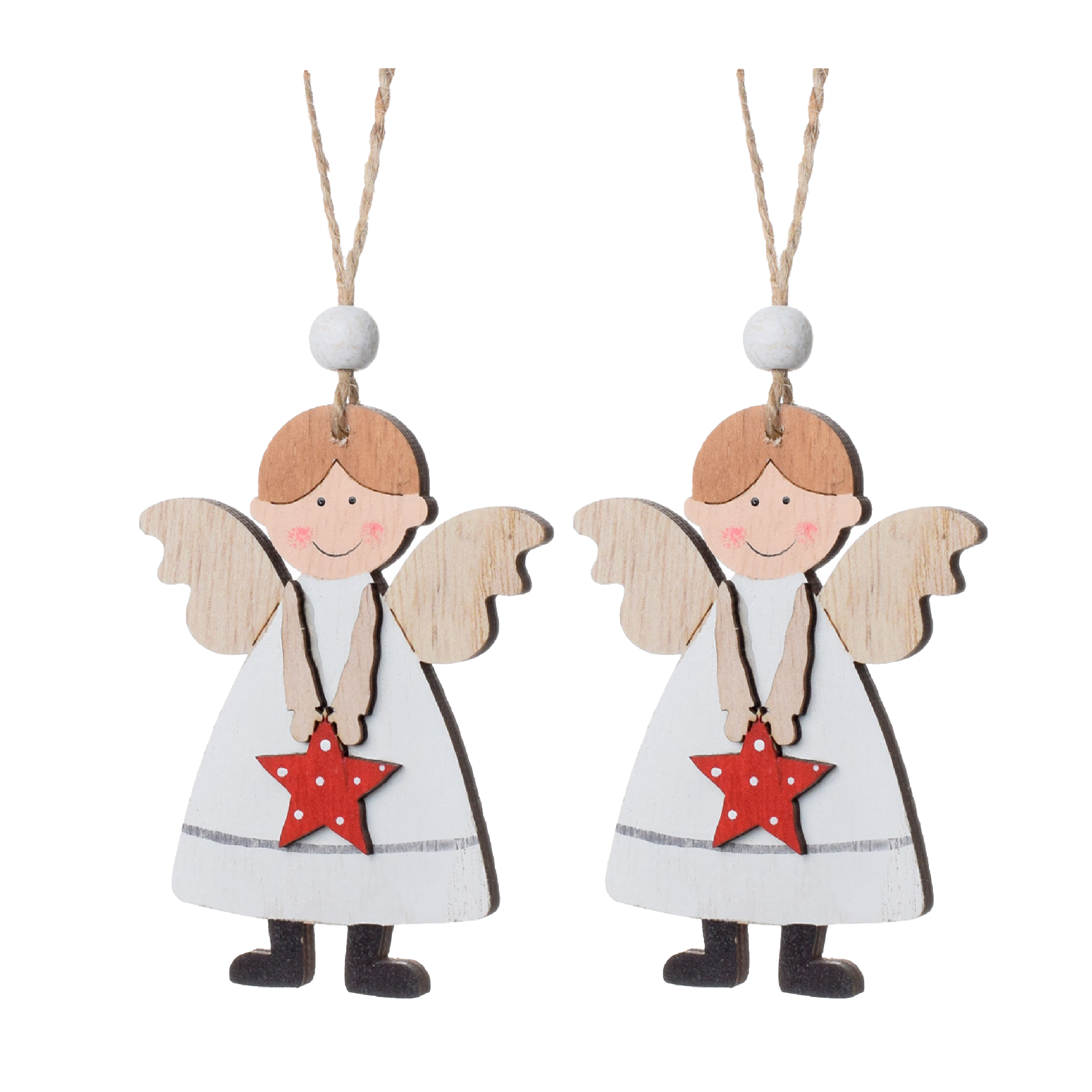 Vneste do svého domova kouzlo Vánoc s malovaným dřevěným andělem. Elegantní bílý design doplňují béžová křídla a červená hvězda s puntíky. Díky provázku s dekorativní kuličkou je ideální k zavěšení na stromeček nebo jako součást sváteční výzdoby. Výška 17 cm.
