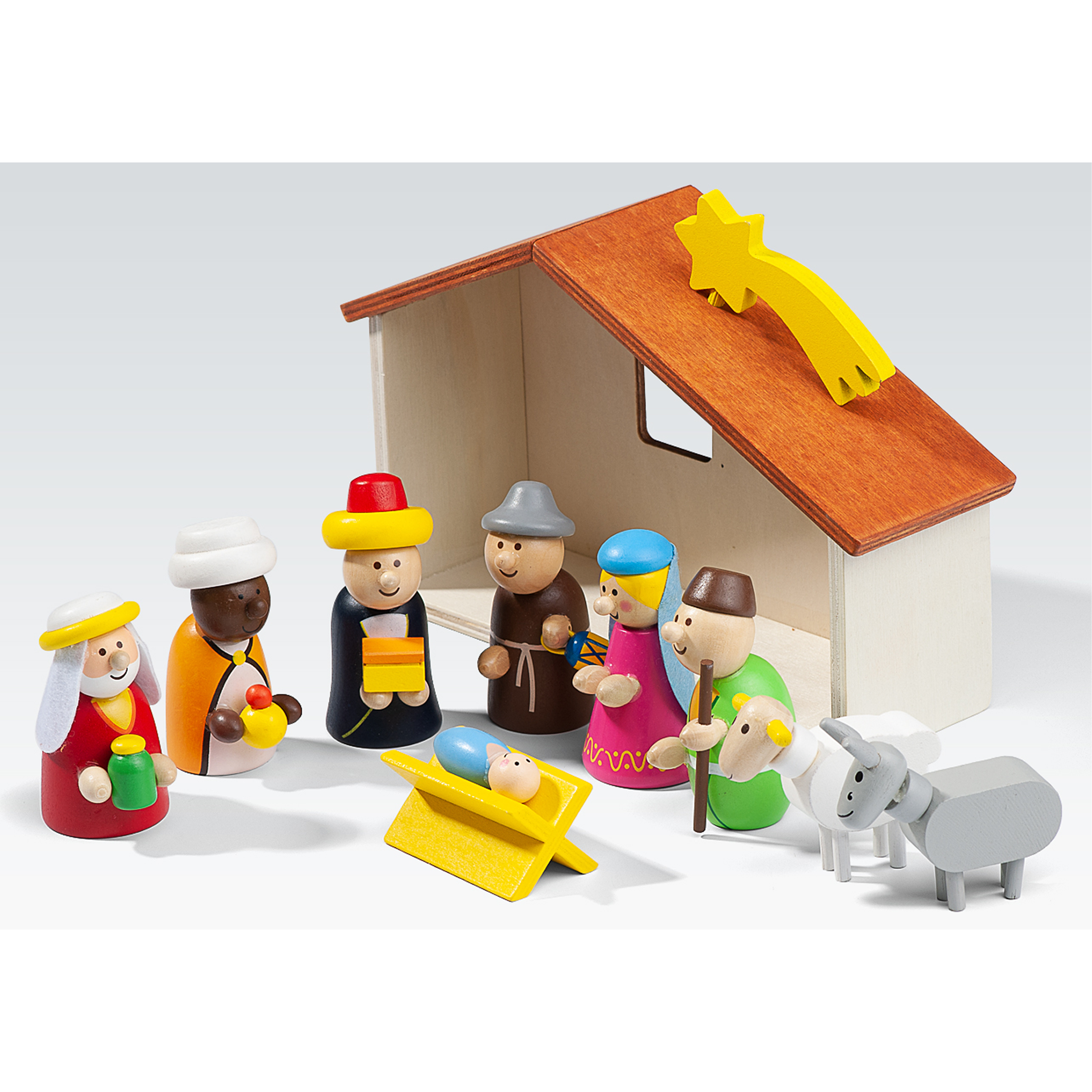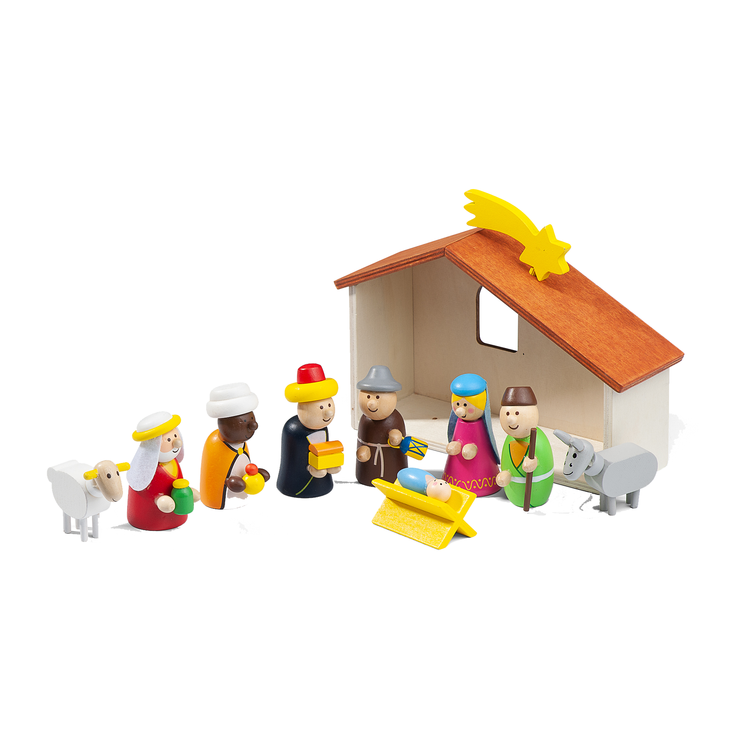 Dřevěný betlém vhodný jako vánoční dekorace nebo jako hračka pro děti.
