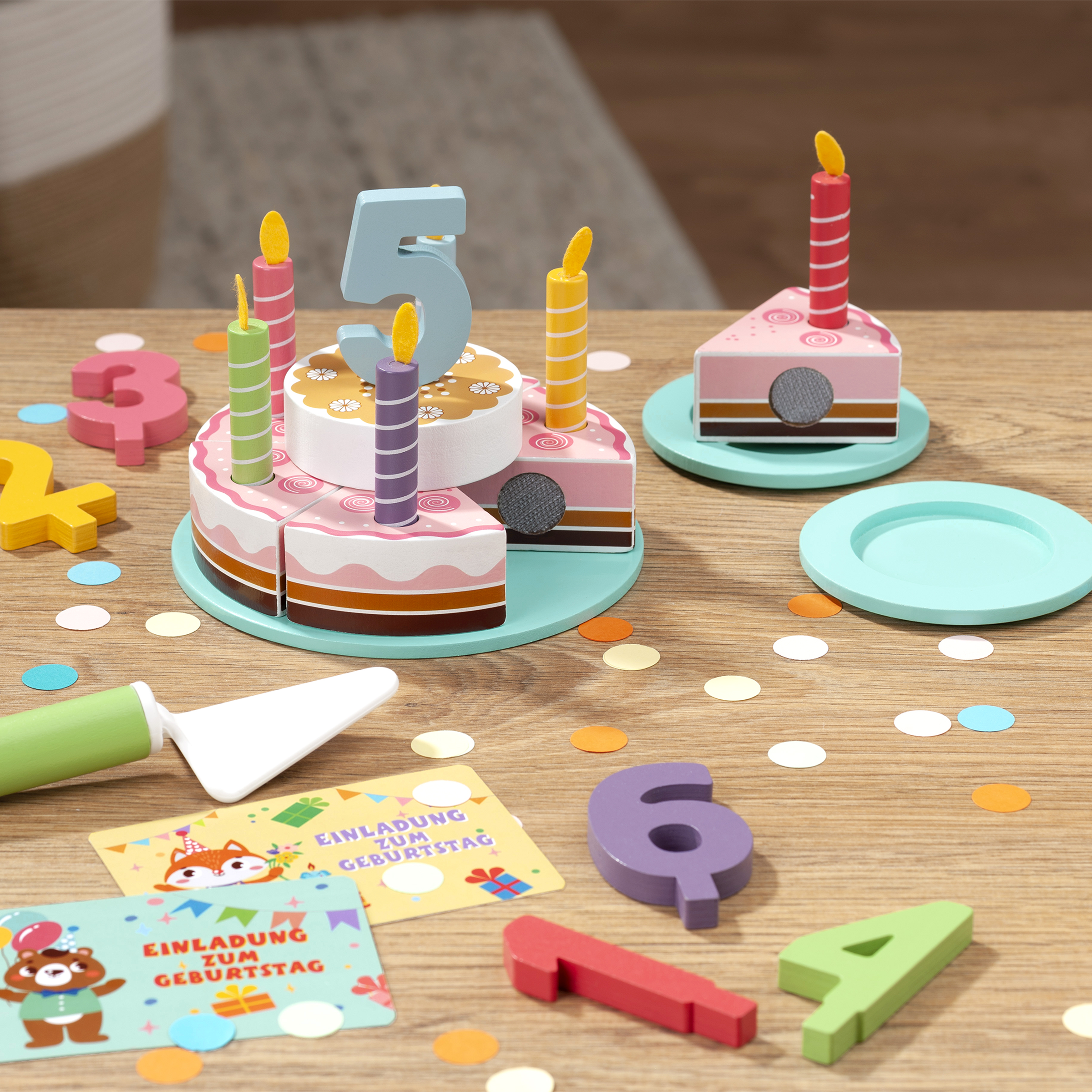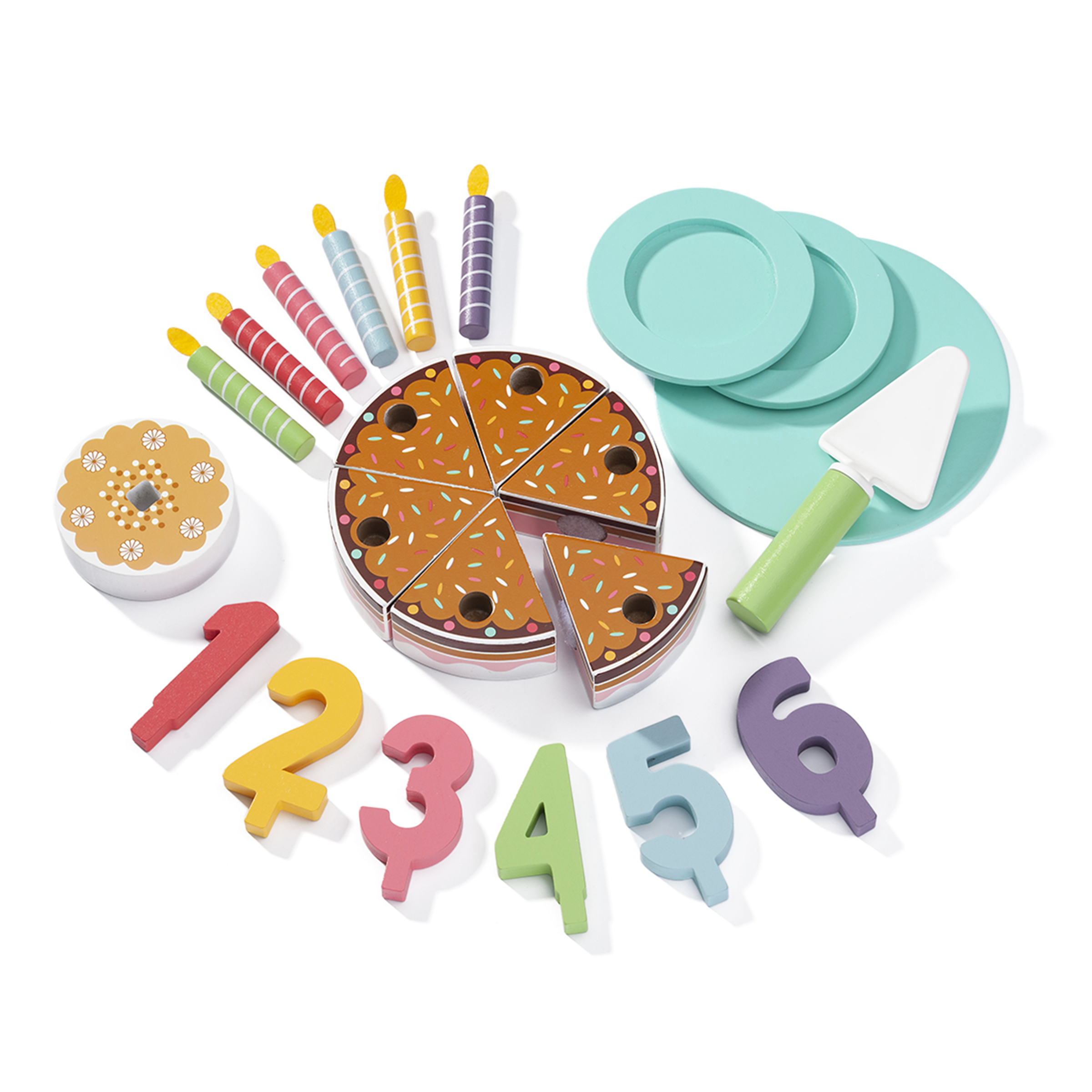 - vč. 2 pozvánek, 1 dortového tácu, se servírovací lopatkou, 2 servírovacích talířů, 6 svíček, 6 čísel od 1 do 6, 7 kusů dortu