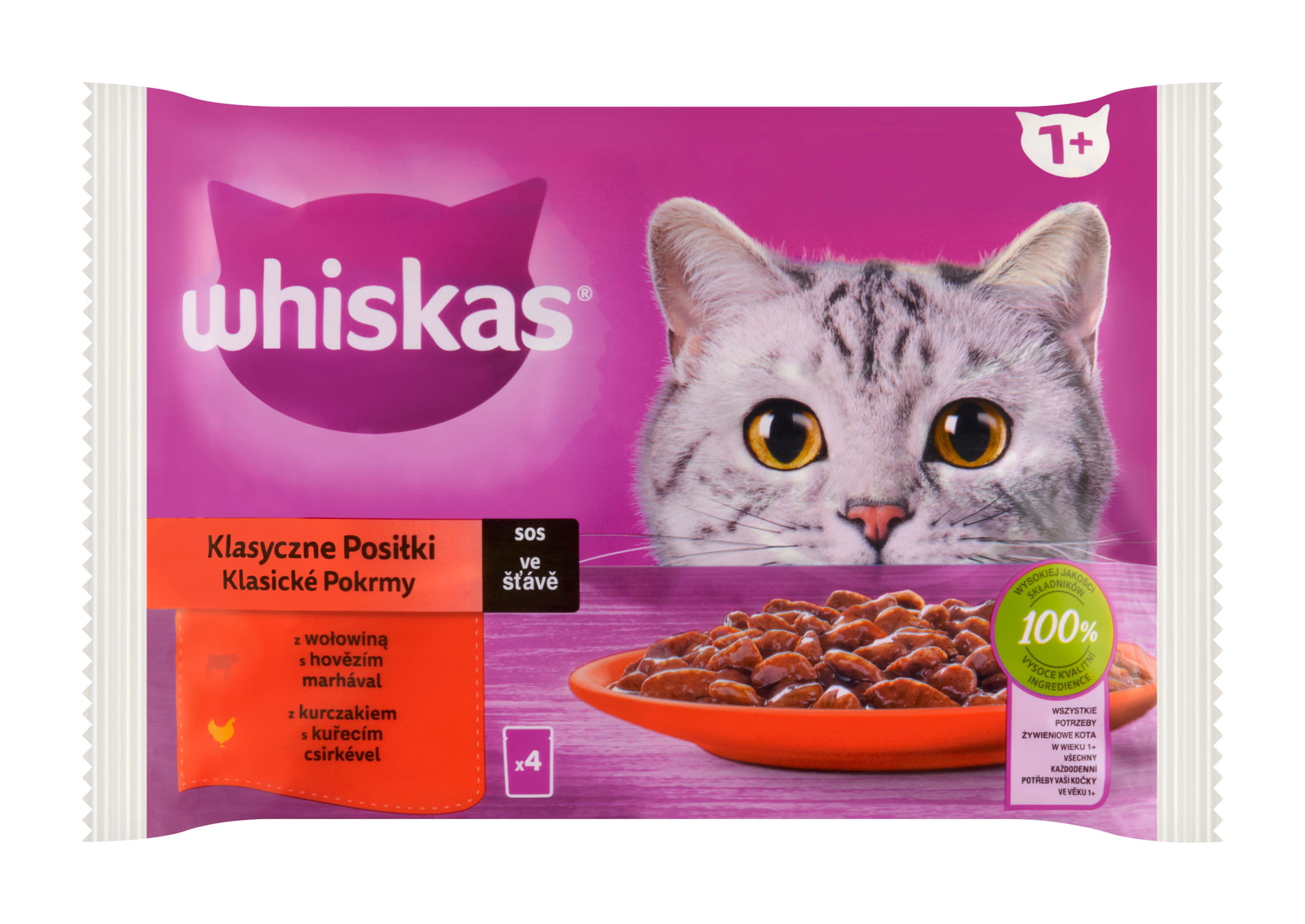 Doporučené dávkování: viz obal. 1x kapsičku můžete nahradit 16 g suchého krmiva Whiskas®. Kočka o hmotnosti 3 kg potřebuje 3 - 3½ kapsičky denně, kočka o hmotnosti 4 kg potřebuje 3½ kapsičky denně, kočka o hmotnosti 4 kg potřebuje 3½ - 4 kapsičky denně, kočka o hmotnosti 5 kg potřebuje 4 - 4½ kapsičky denně. Úhrn kalorií se počítá z pochoutek. Přizpůsobte dávku krmiva potřebám vaší kočky. Jak? Navštivte naše webové stránky. Nabídněte čerstvou pitnou vodu. Podávejte při pokojové teplotě.