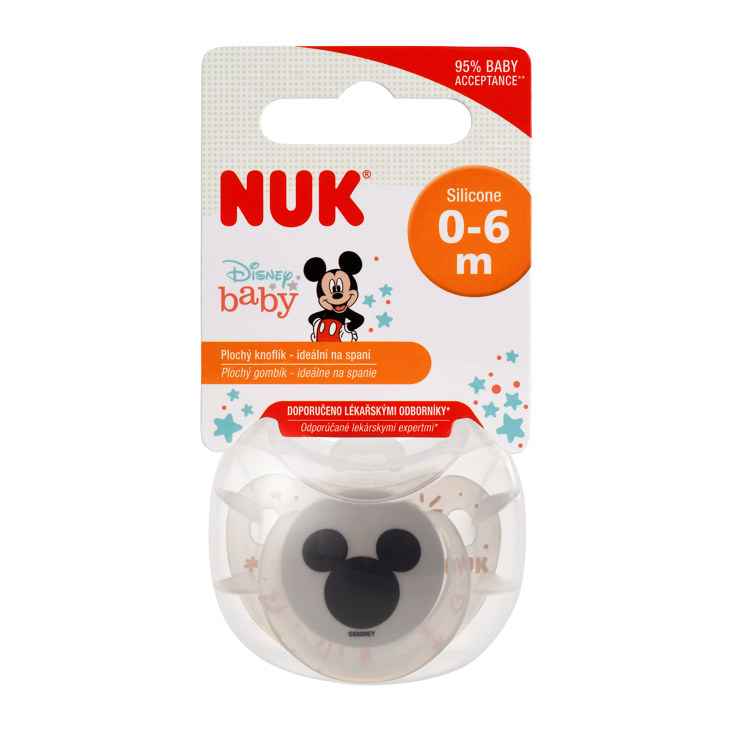 Každý den čeká na vaše děti mnoho vzrušujících dobrodružství, během nichž je dudlík nepostradatelným společníkem, který jim dává pocit jistoty a bezpečí. Ať už vaše dítě rozruší neznámé tváře, nové zvuky či prostředí, známé instinktivní sání dudlíku je opět dokáže rychle uklidnit. Nový silikonový dudlík NUK Disney Mickey s vylepšeným tvarem – dudlík má stejný tvar jako matčina bradavka při kojení, proto dokonale padne do úst dítěte při sání. Díky užšímu a ploššímu tvaru sací části se snižuje tlak na zuby a čelisti, a poskytuje tak jazyku dostatek prostoru pro přirozené sací pohyby. Plochá sací část a hladká spodní strana přinášejí dítěti příjemný pocit a podporují tak přirozené sání.
